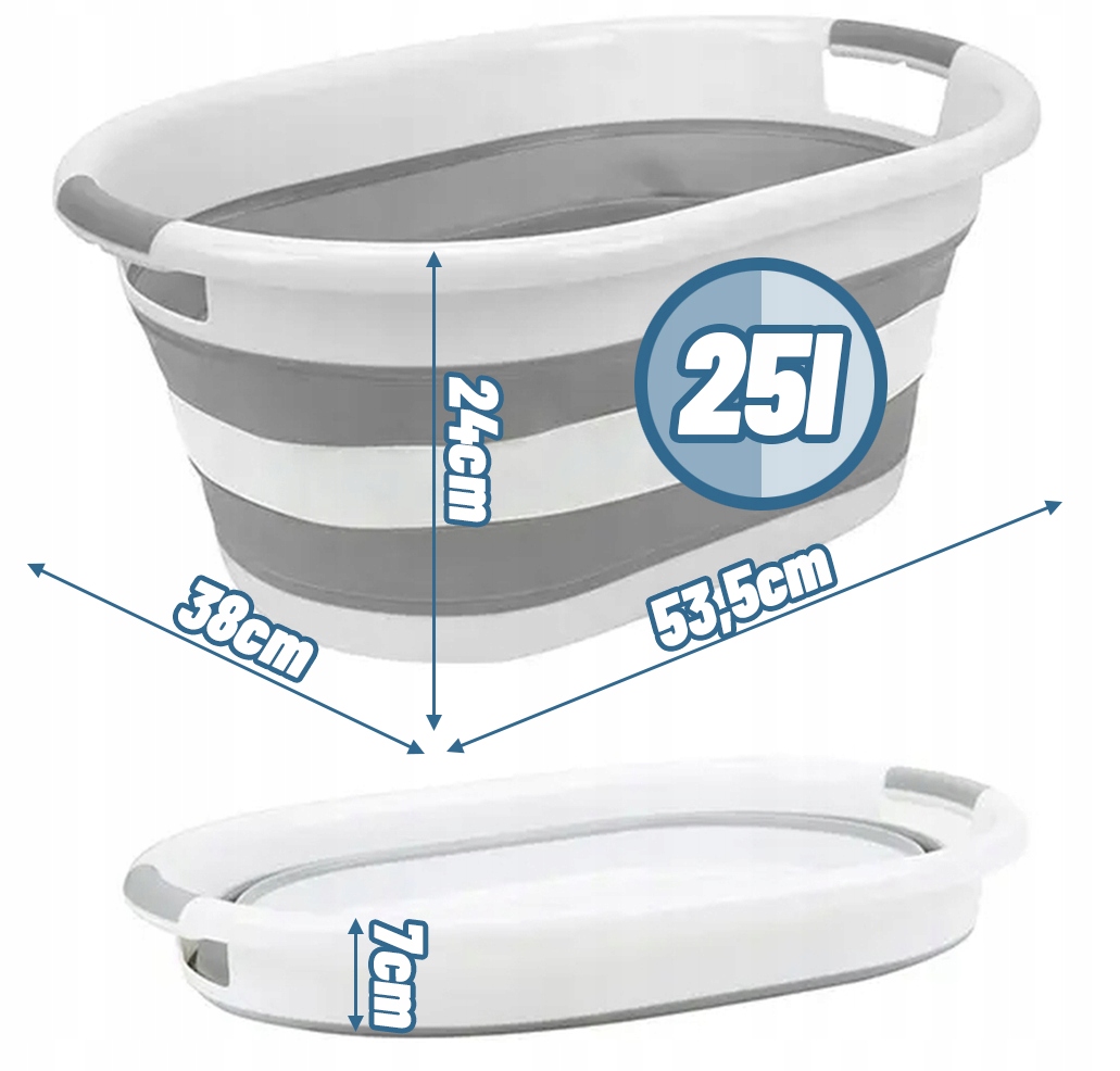 Миска легко розкладається, тому нею може користуватися кожен. У складеному вигляді займає зовсім небагато місця. Виготовлена з міцного і міцного силікону, стійкого до механічних пошкоджень. Завдяки об’єму 25 літрів він може вмістити величезну кількість білизни. Він також чудово працюватиме як безпечніша альтернатива стандартним дитячим ванночкам.
