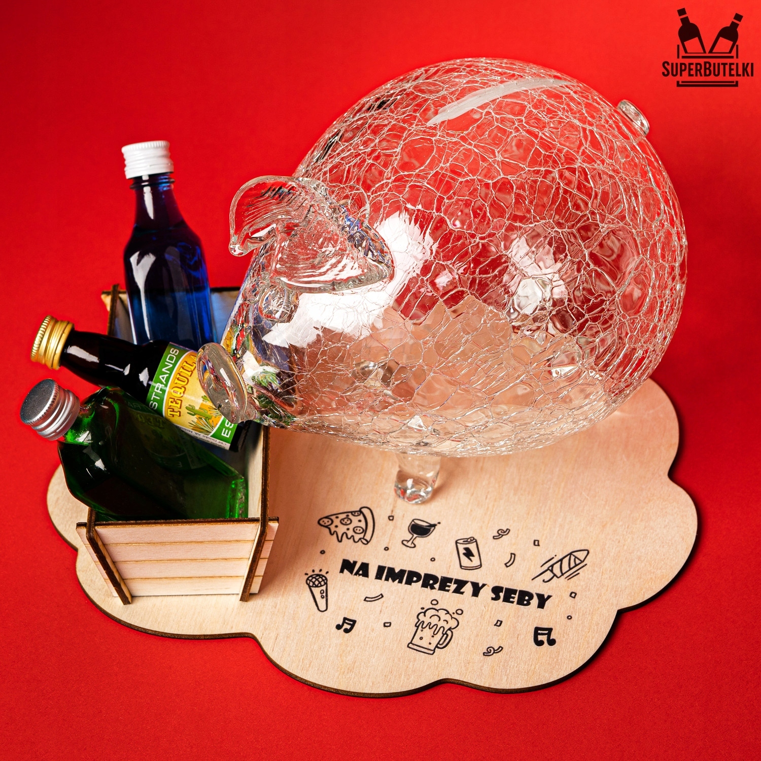 Скарбничка, ЕФЕКТ МАТОВОГО СКЛА, в комплекті з коритом і дерев'яною підставкою з принтом.