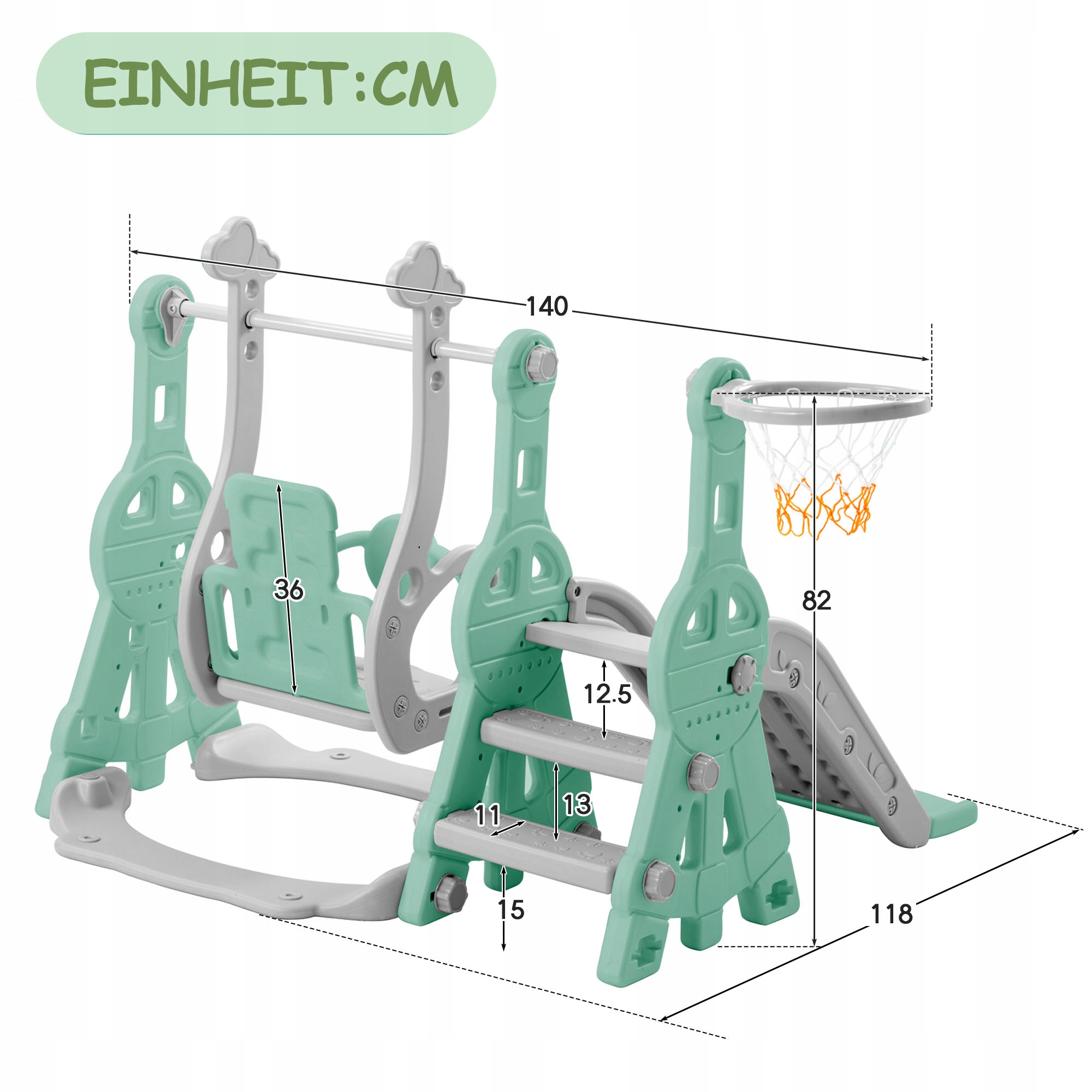 Завдяки широкому спектру веселощів, цей багатофункціональний майданчик пропонує вашим дітям більше радості та можливості фізичних вправ. Наш продукт пройшов сертифікацію серії EN71. Барвистий зовнішній вигляд, безпечні матеріали та продумані конструкції цього майданчика для дітей сподобаються дітям, захищаючи їх під час гри. Цей майданчик для дітей типу 4 в 1 містить слайд, драбину, гойдалку, гойдалку та баскетбольний ободок. У цій ситуації ваші діти можуть насолоджуватися різними способами гри та грати з друзями вдома. Детальний дизайн цього продукту гарантує безпеку ваших дітей під час гри. І гуманізована конфігурація цього продукту враховує не лише безпеку дітей, але й просту установку для батьків. Цей дитячий майданчик 4 в 1 - чудовий вибір для дітей вдома чи зовні.