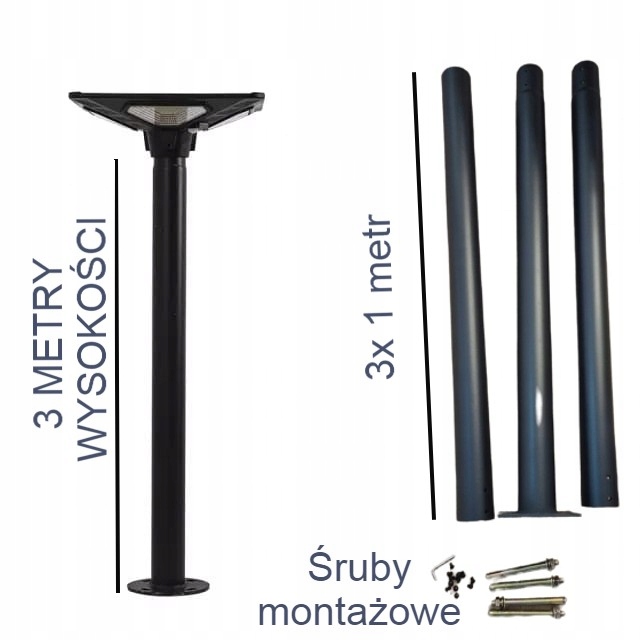 Після складання модульний стовп має довжину 3 метри. У набір входять гвинти для кріплення до землі.