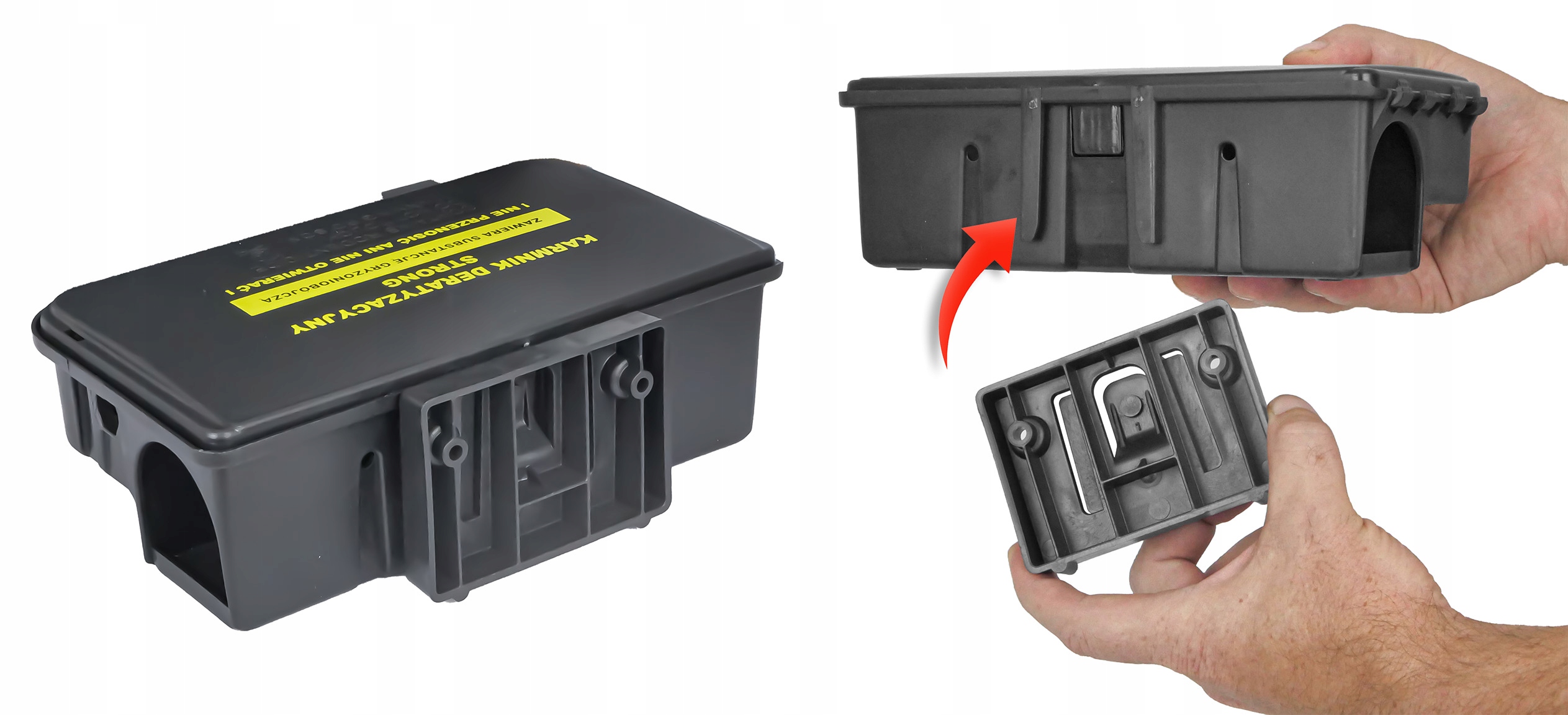 Сильна миша та щури використовуються для моніторингу та хімічної усунення миші та щурів за допомогою відповідних родентицидів. Він виготовлений з міцного пластику з розмірами 23 x 12,8 x 7,5 см і має ергономічну форму. Всередині станції дератизації можна розмістити щурами та мишами у вигляді пасти, гранул або кубів. Для здоров’я несанкціонованих осіб