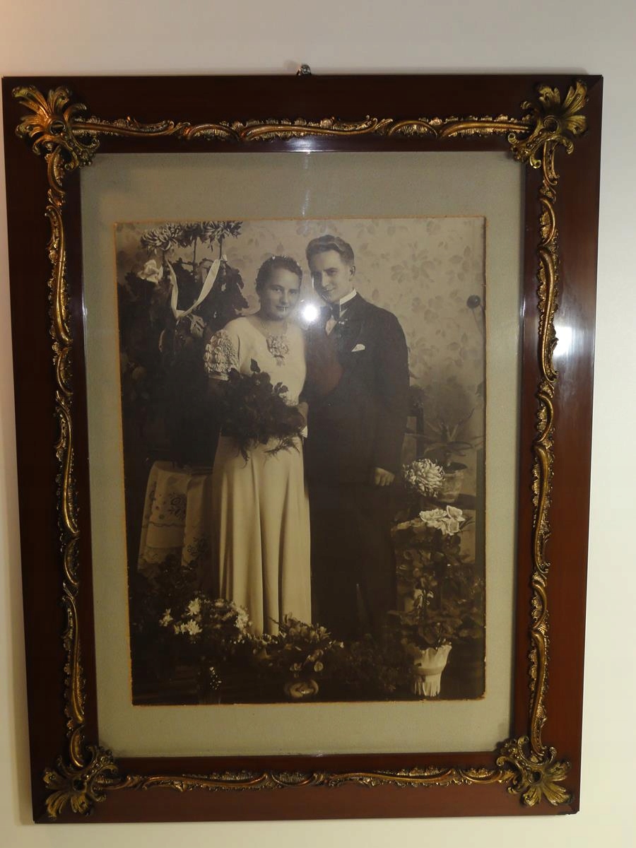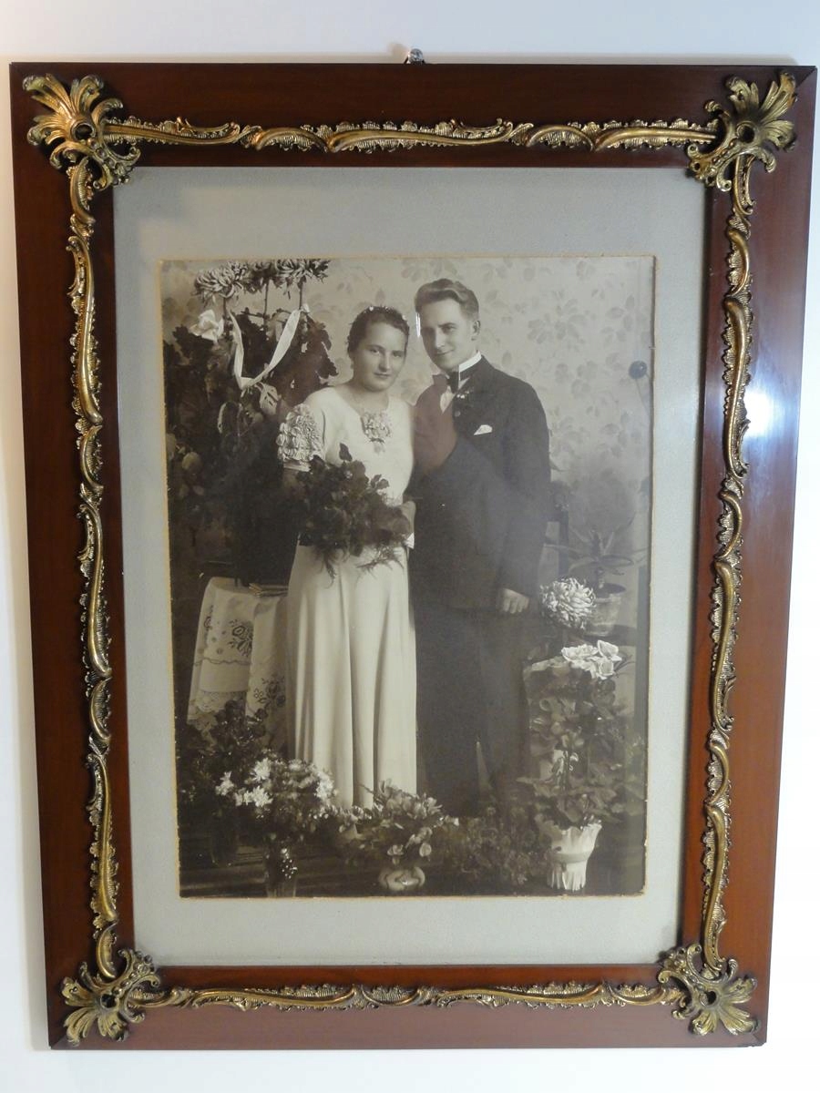 *стара весільна фотографія, оправлена в лаковану рамку, покрита бронзою, виготовлена на початку 20 століття, p>
