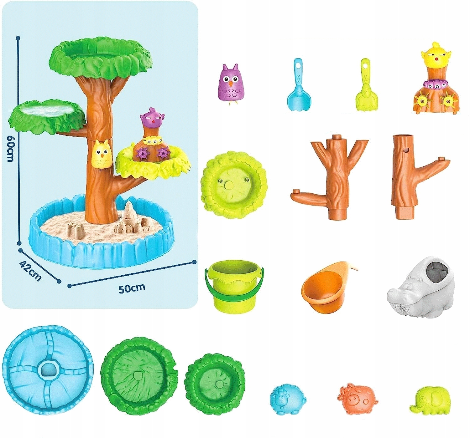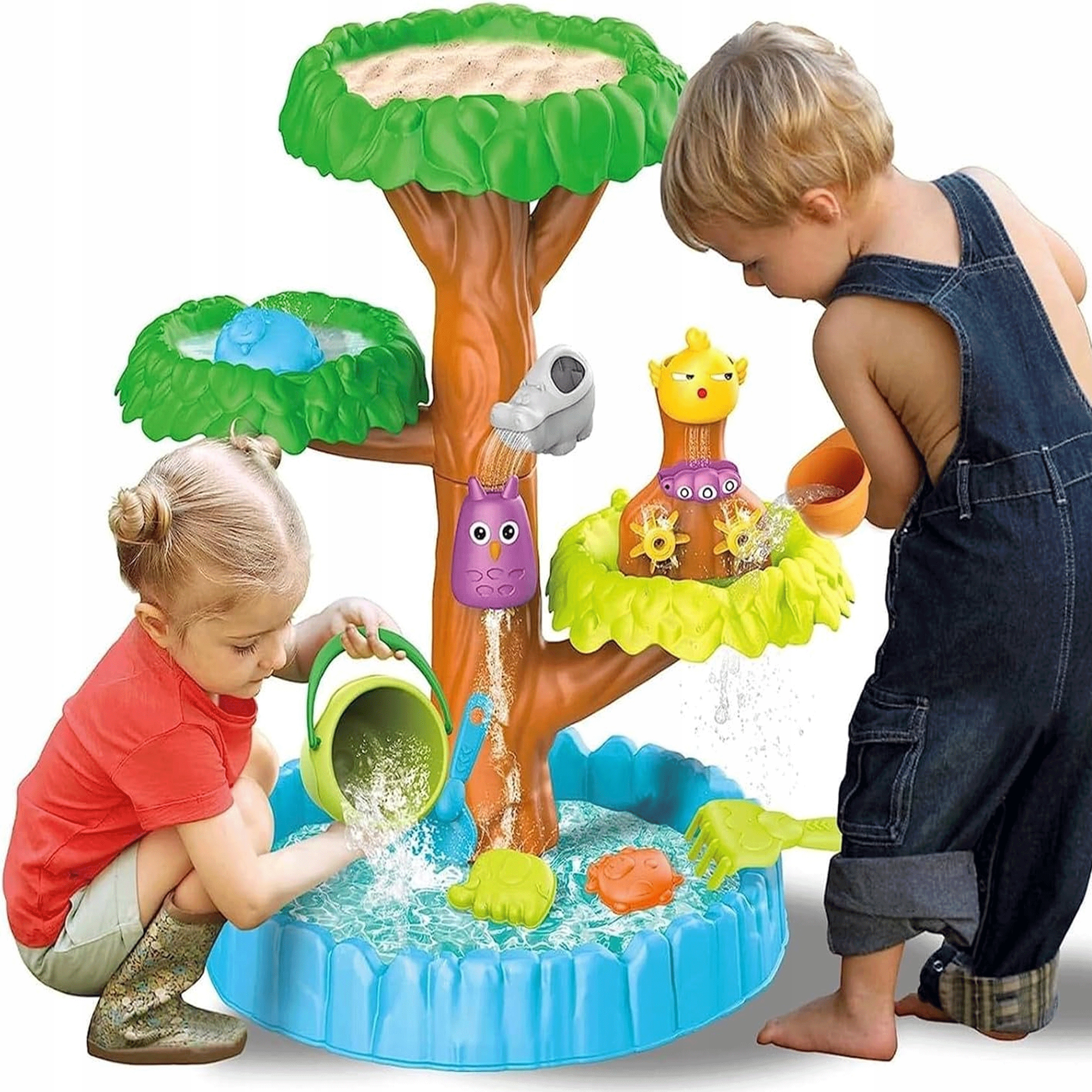 Ідеально підходить для розваги з водою та піском, передайте свій задній двір на абсолютно новий рівень. Включено: відро, ємність для заливання води, форм, граблі, шпателів, водних коліс.