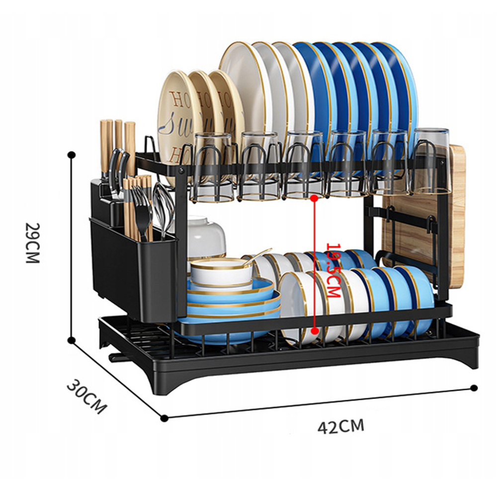 ВЕЛИКА СУШКА ДЛЯ ПОСУДУ ЗІ ЗЛИВОМ, ДВА РІВНЕВА, ЧОРНА 42×32×30 СМ