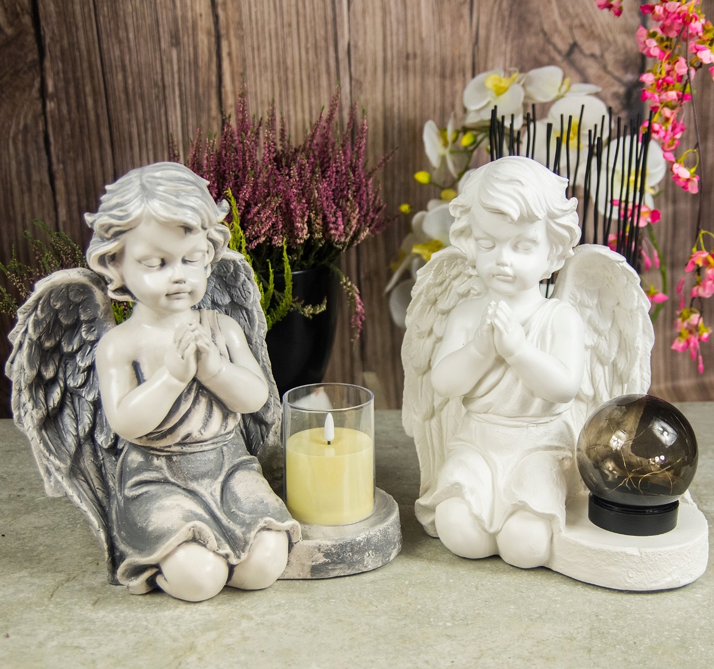 ➡️ Декоративна гіпсова садова фігурка, надгробок зі світлодіодною лампою у формі ангела - БІЛА