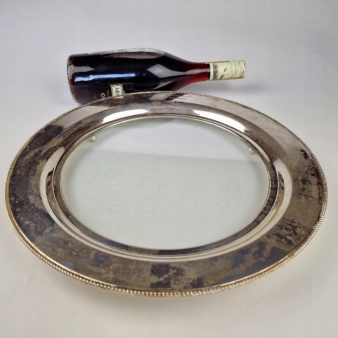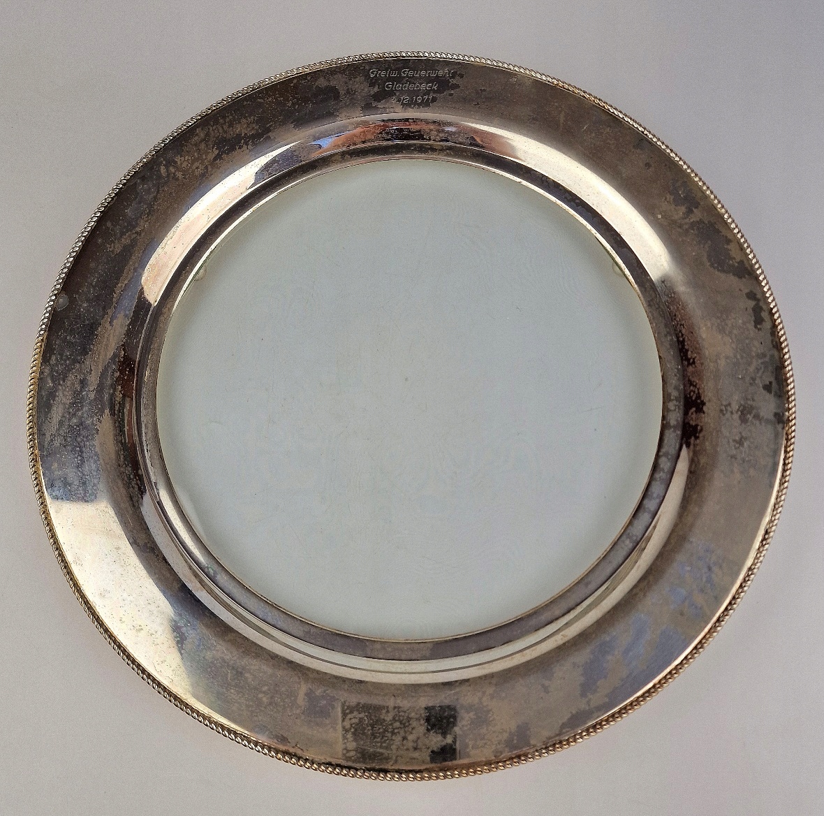 ВЕЛИКА ТАРІЛКА ВИНТАЖНА З АНТИЧНИМ ПОКРИВАННЯМ ЗІ СКЛЯНОЮ ВСТАВКОЮ