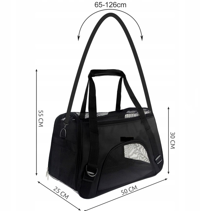 - ВЕЛИКА ВЕНТИЛЯЦІЯ - транспортувальна сумка має велику вентиляцію, навіть зверху, що дозволяє транспортованій тварині вільно дихати.