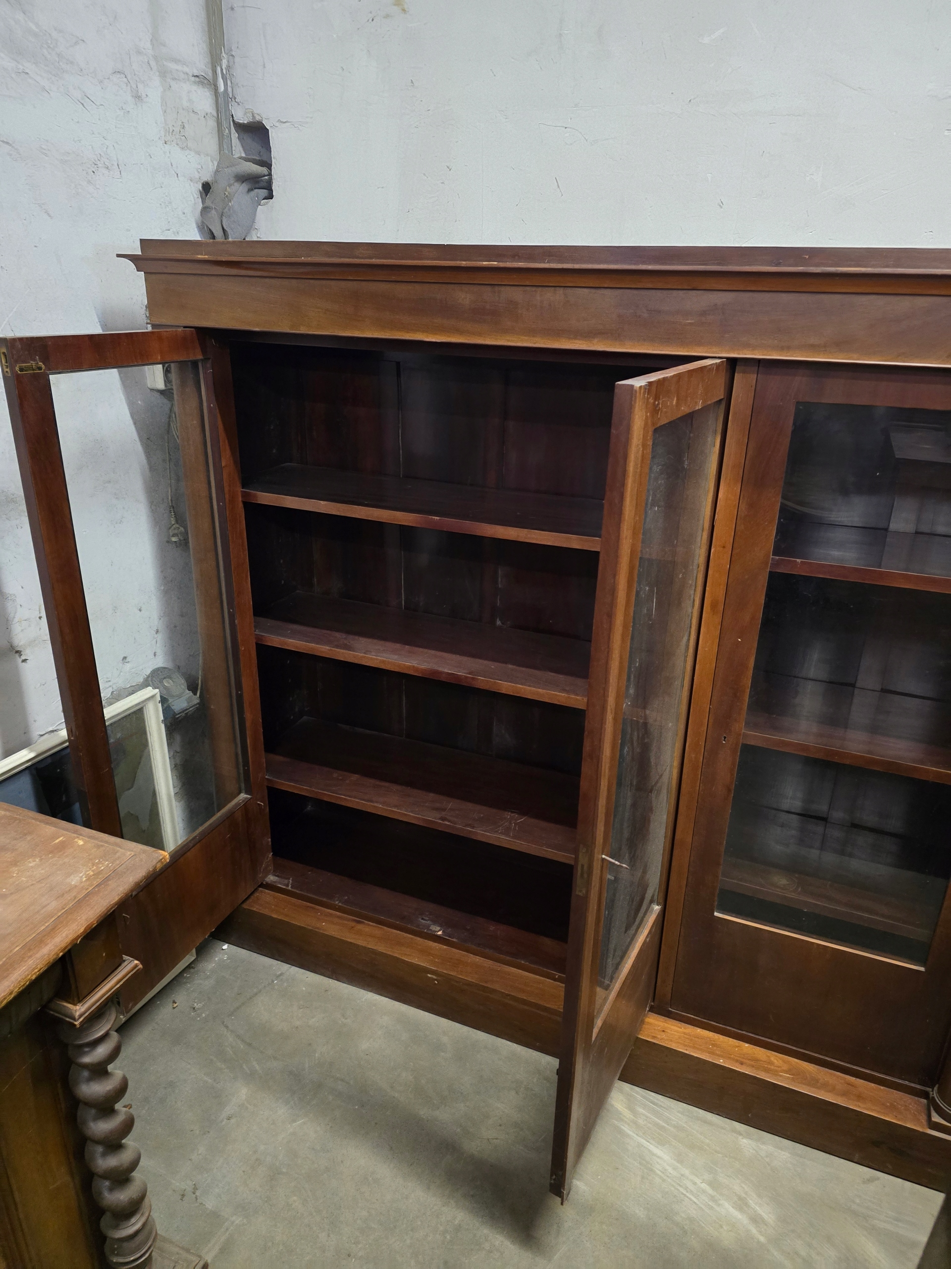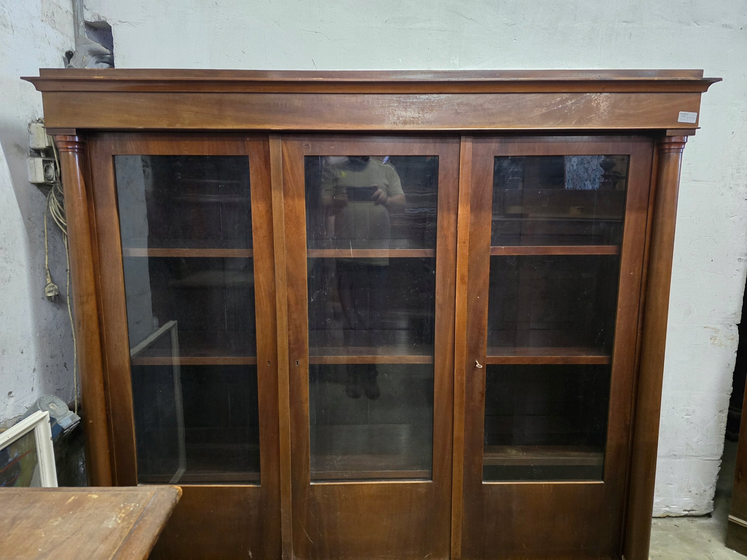 Велика тридверна бібліотека бідермаєр на колонах з червоного дерева