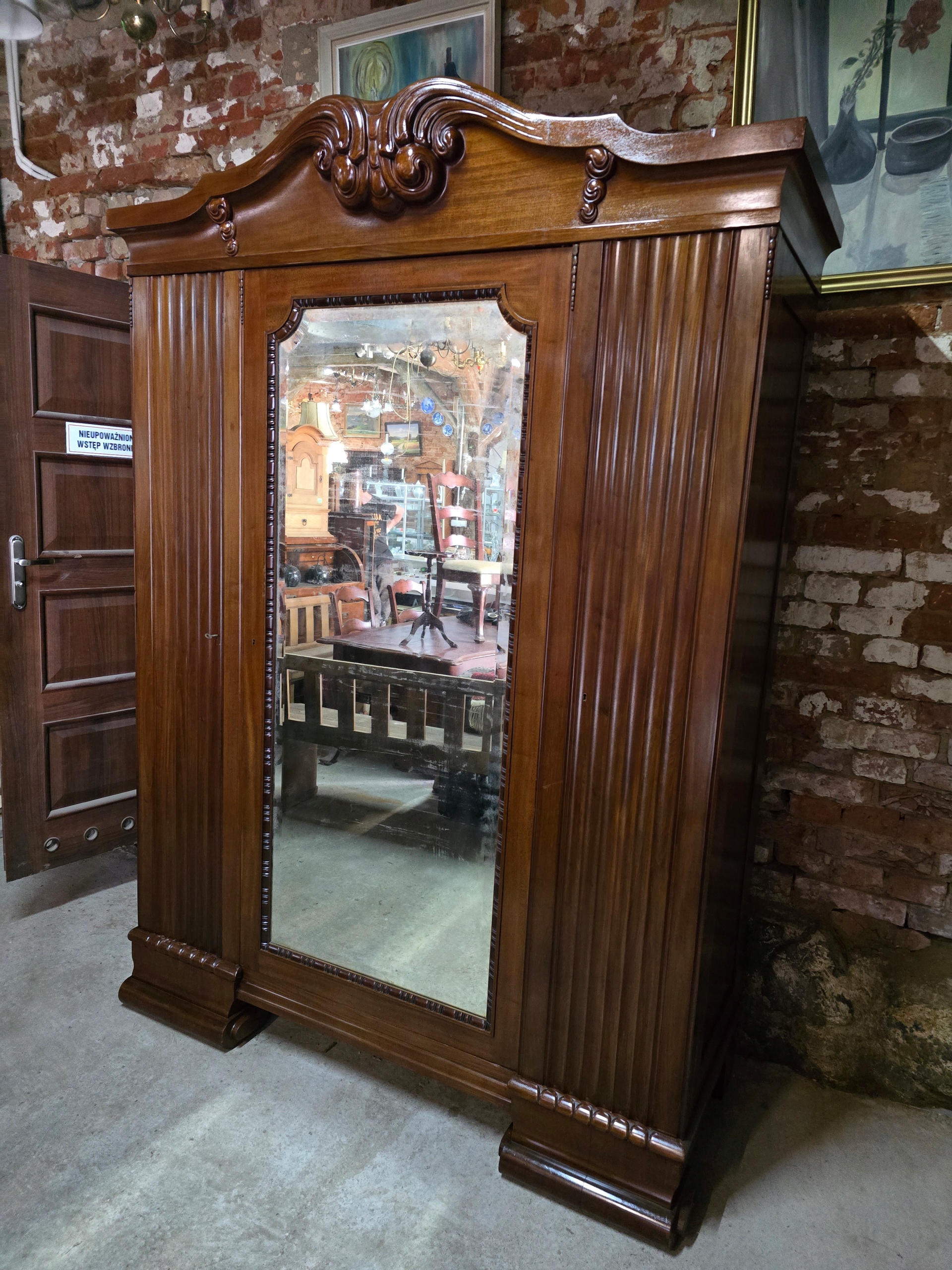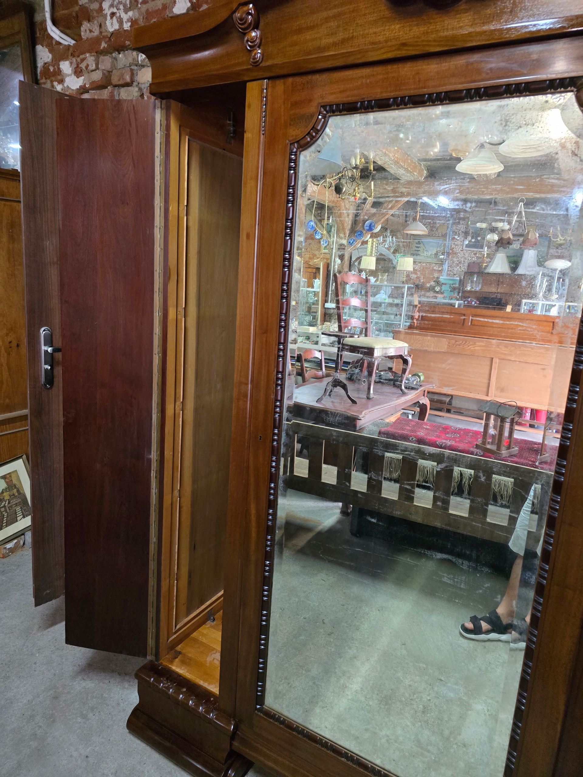Велика знімна шафа з червоного дерева з дзеркалом р.1900 величезний масив