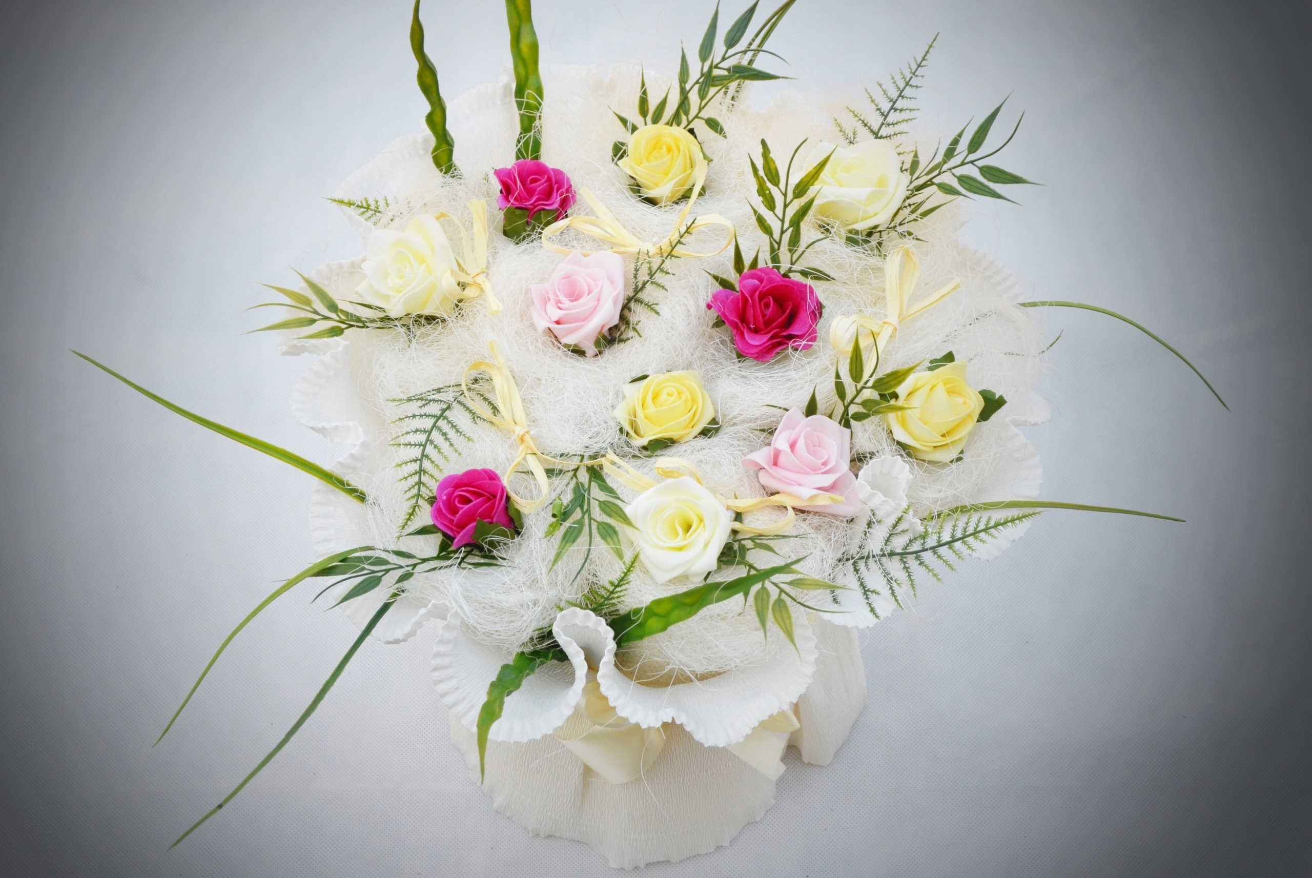 Стандартні букети складаються з рушників кольору екрю.