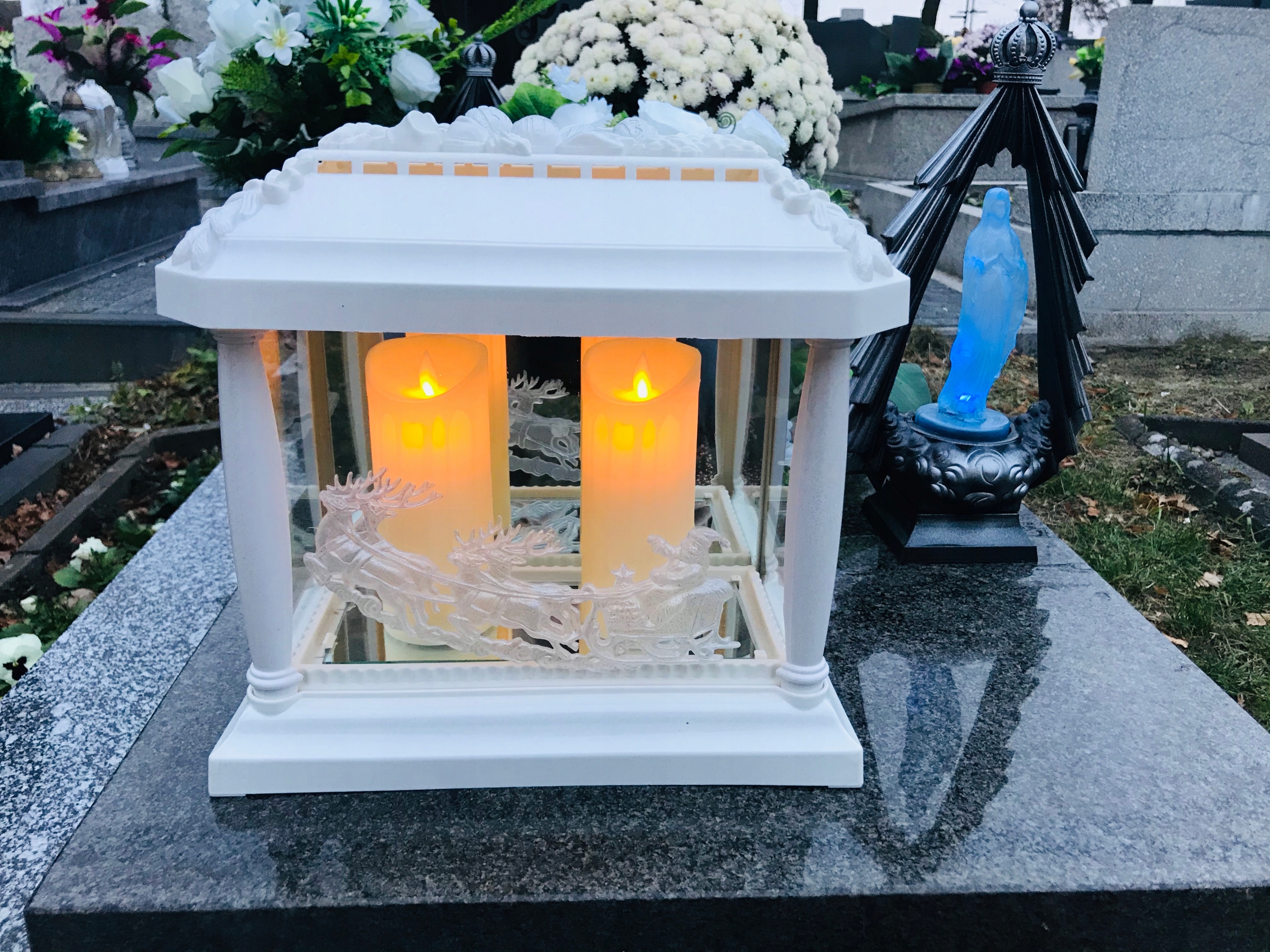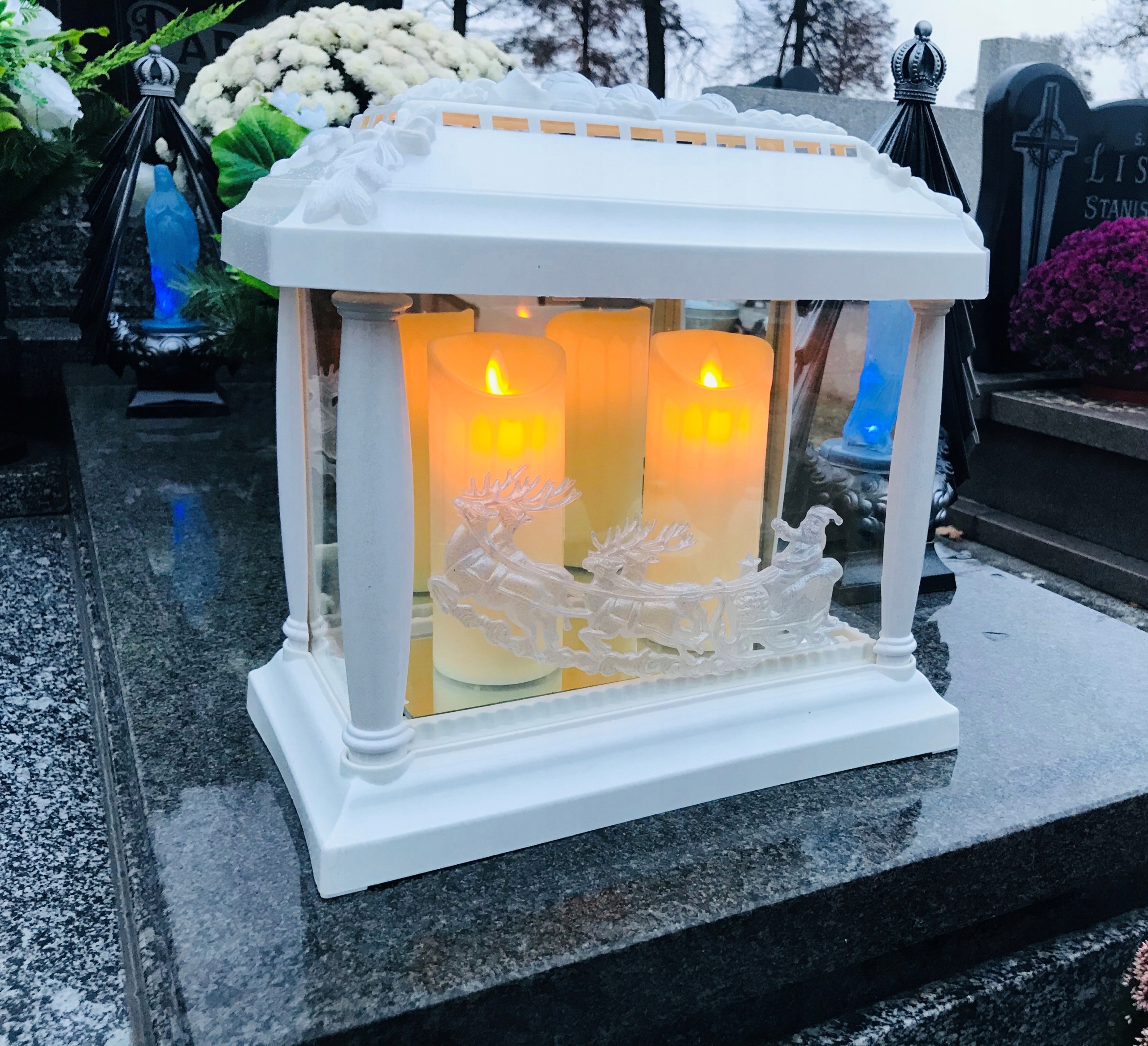 Корпус зроблено з атмосферостійкого матеріалу, на задній стінці та знизу є дзеркала, призначені для відображення світла свічок, інші три стінки зроблені з товстого скла .
