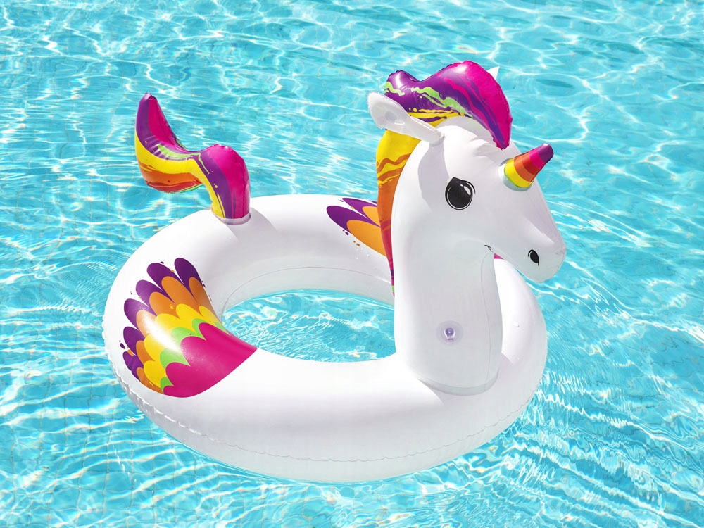 Надувне кільце для плавання у вигляді райдужного єдинорога - чудова пропозиція від Bestway. Ця оригінальна виріб дуже сподобається під час літніх канікул.