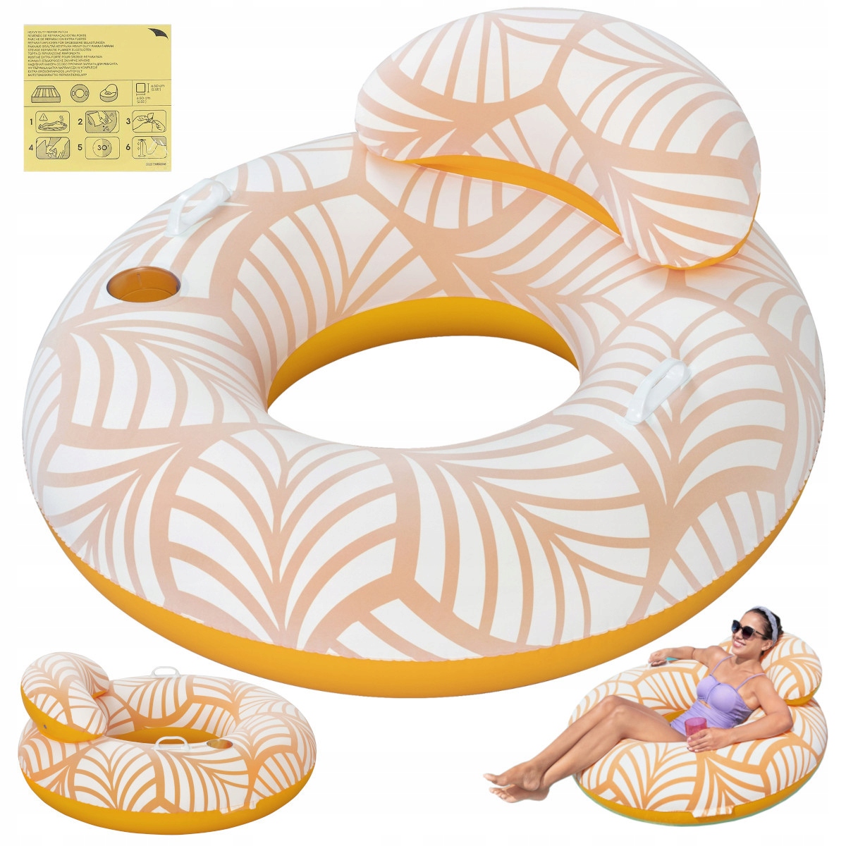 плавальне колесо має спеціальний отвір, присвячений чашкам, а пляшки з напоями. Завдяки цьому під час відпочинку ви можете задовольнити своє бажання в будь -який час.