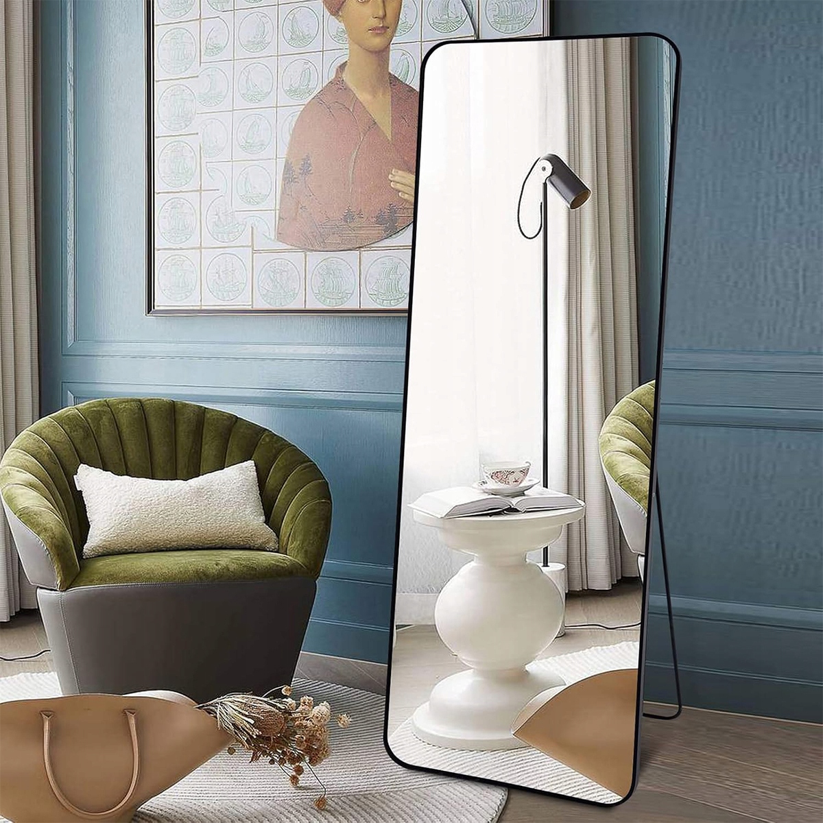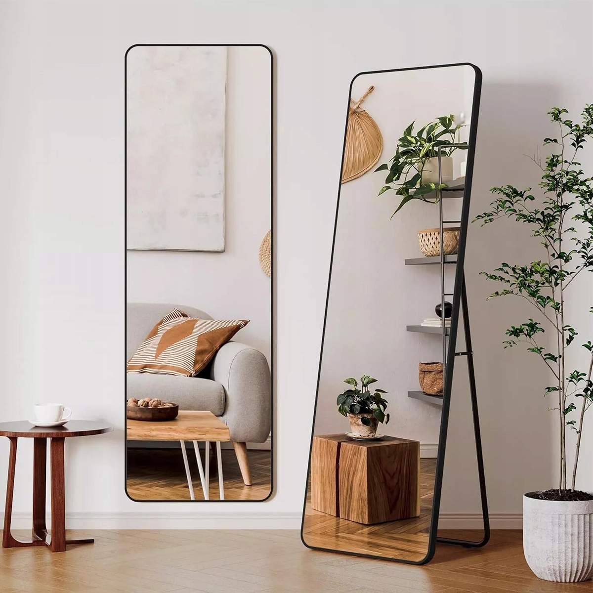 🌟lustro pełnowymiarowe, 160 х 50 см, prostokątne lustro stojące (z zaokrąglonyi rogami), z możliwością Zawieszenia, rama Ze aluminum, de sypialni, salonu, garderoby (Czarne) 🌟/Hy1>