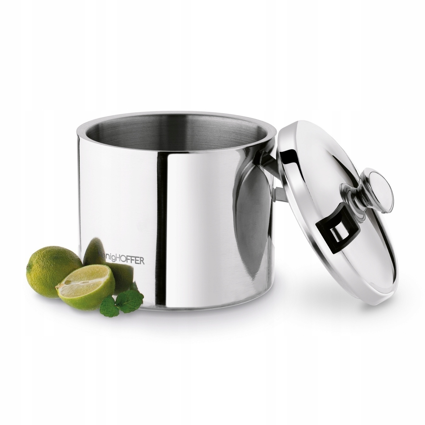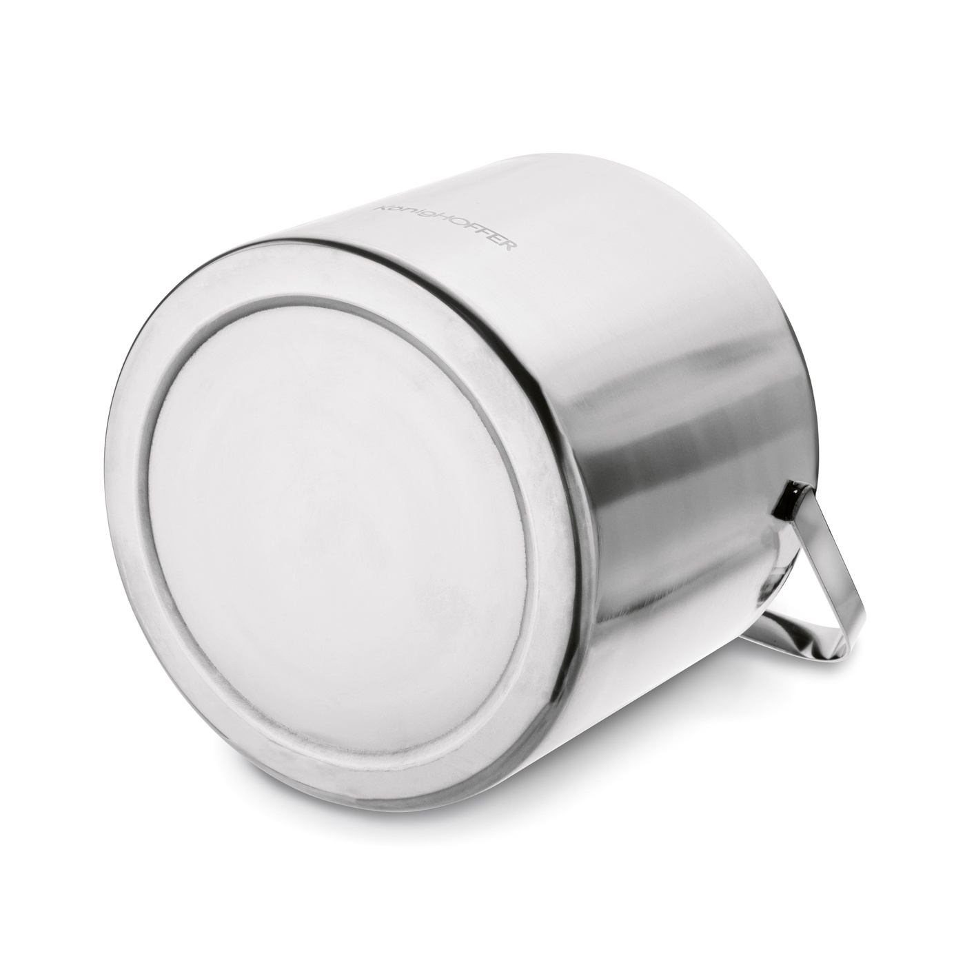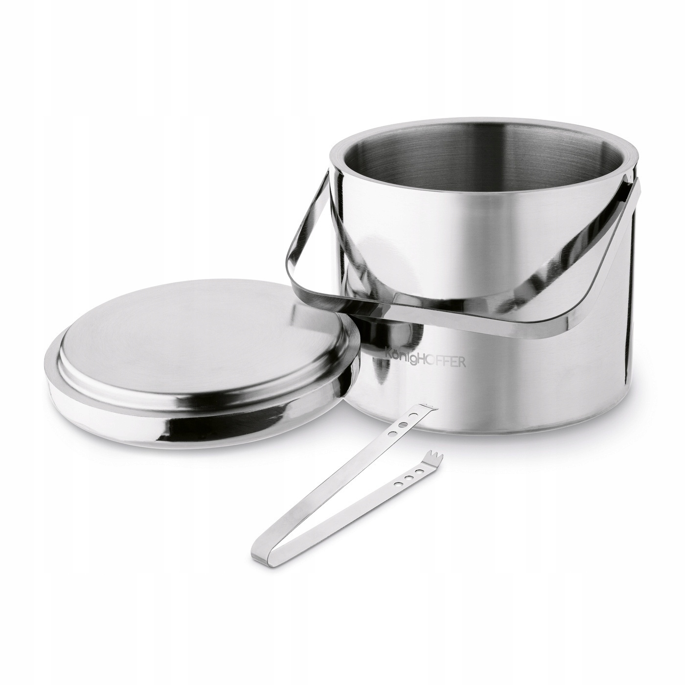 Відро для льоду Konighoffer Lugo 3 л з щипцями виготовлено з нержавіючої сталі. У його розміри поміститься, наприклад, класична пляшка алкоголю. Ідеально підходить для вечірки. Ви можете використовувати його, щоб забезпечити гостей кубиками льоду для напоїв. Завдяки металевій ручці ви можете безпечно переносити відерце з льодом. Модель велика, міцна і добре витримує використання та вологу. Він працюватиме, серед іншого: в рамках романтичного вечора з вином або шампанським. Також має структуру, що забезпечує вакуумну теплоізоляцію вмісту. Щипці, що входять в комплект, полегшують розміщення кубиків. Ви можете сховати їх у кришку.