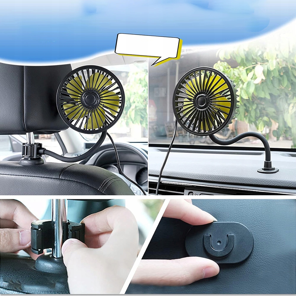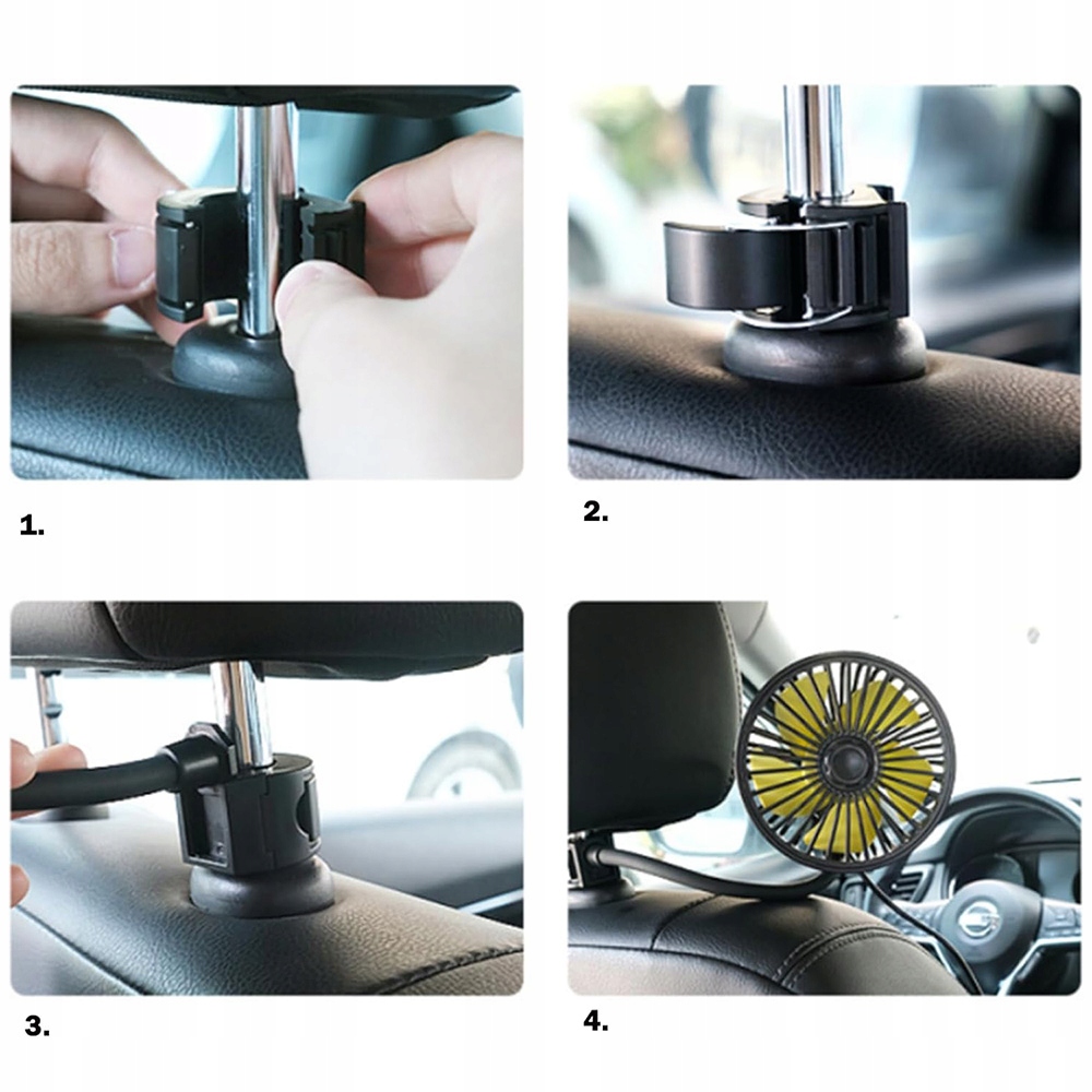 1⃣ Установка в машині: кріпіть вентилятор на задньому сидінні або приладі з вдосконаленим затискачем (підходить до металевих стрижнів діаметром 1-1,55 см). Плоска поверхня для стабільного охолодження.