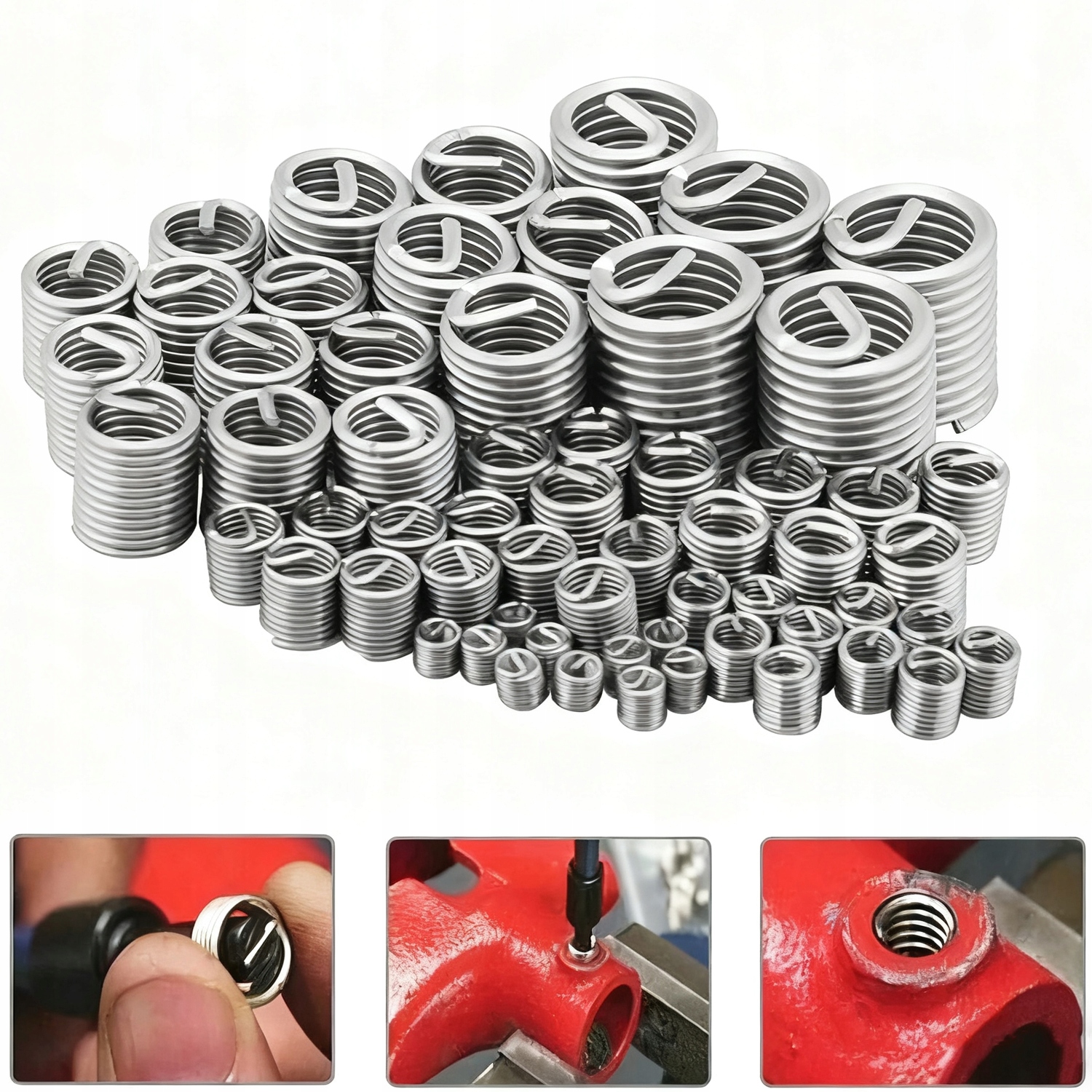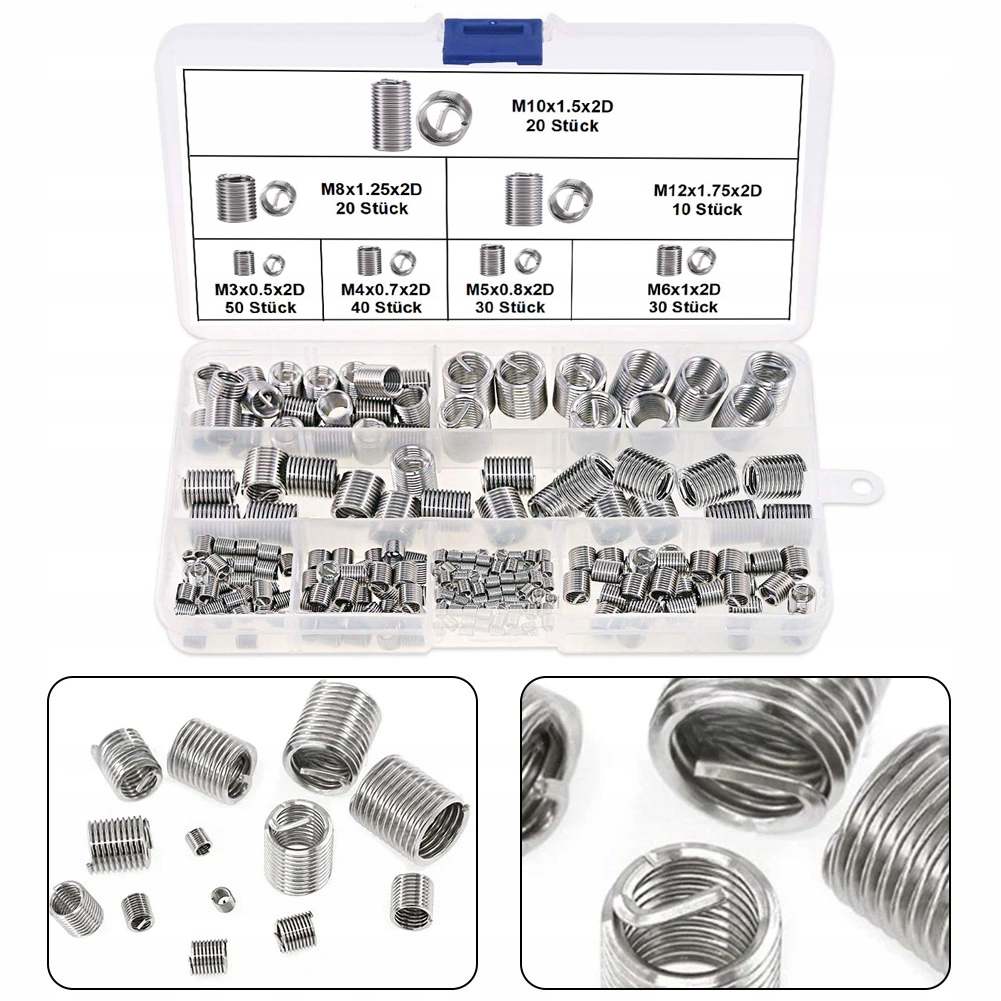 ВЕЛИКІ 200 шт. M3 M4 M5 M6 M8 M10 M12 ВСТАВКИ РЕМОНТНІ ПРУЖИНИ для різьби