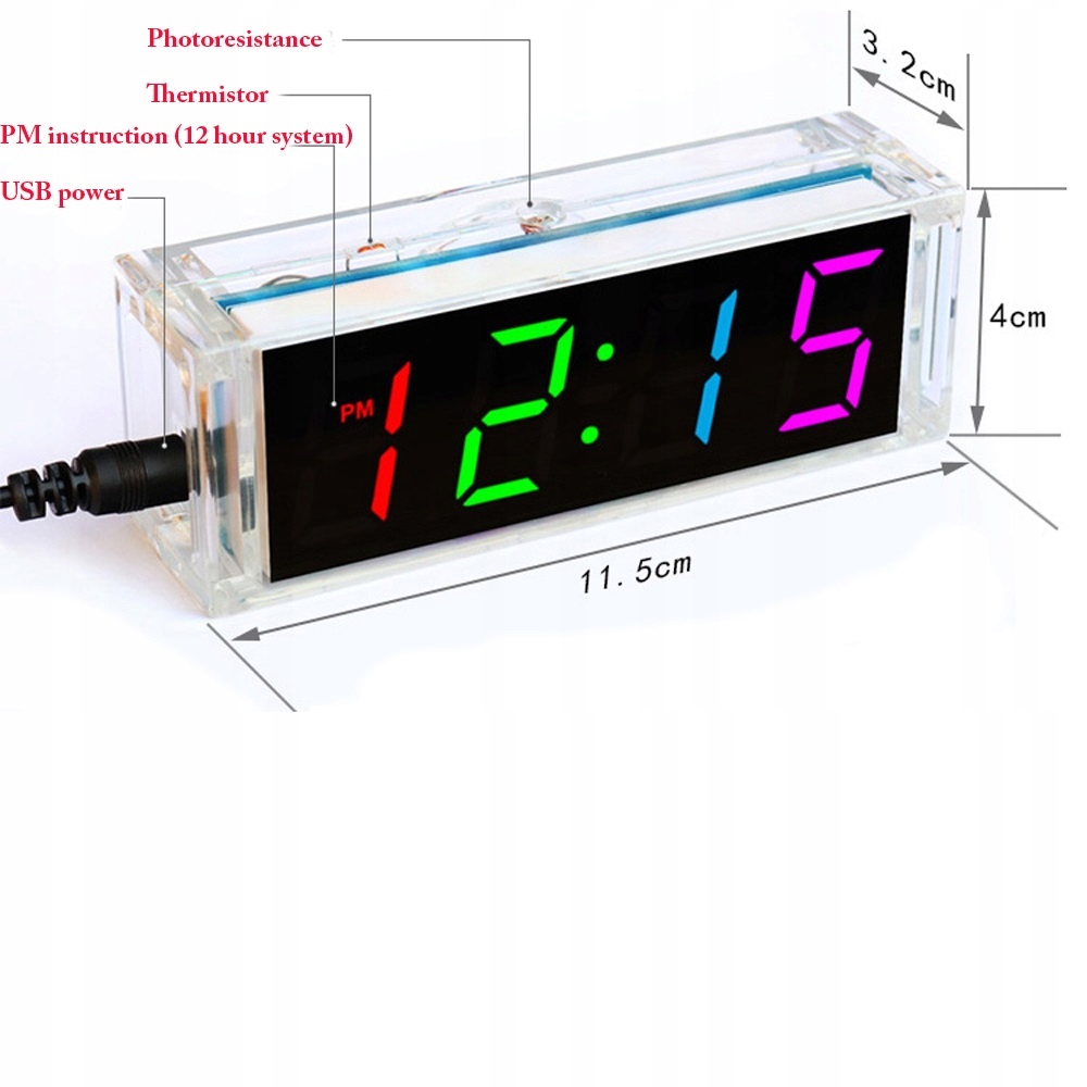 ВЕЛИКІ ЦИФРИ 2,5 см світлодіодний КОЛЬОРОВИЙ терміновий годинник, будильник своїми руками