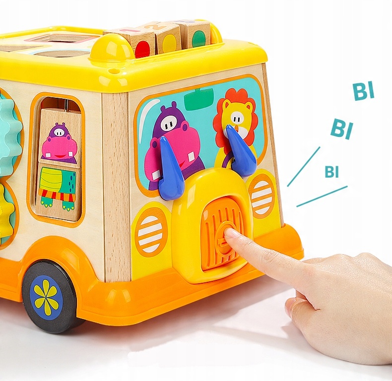 Навчальний кубик з дерев’яним автобусом, який займе нашу дитину довгі години! Через те, що у куба є троянди з багатьма іграми, наша дитина буде рада хотіти грати з ним.