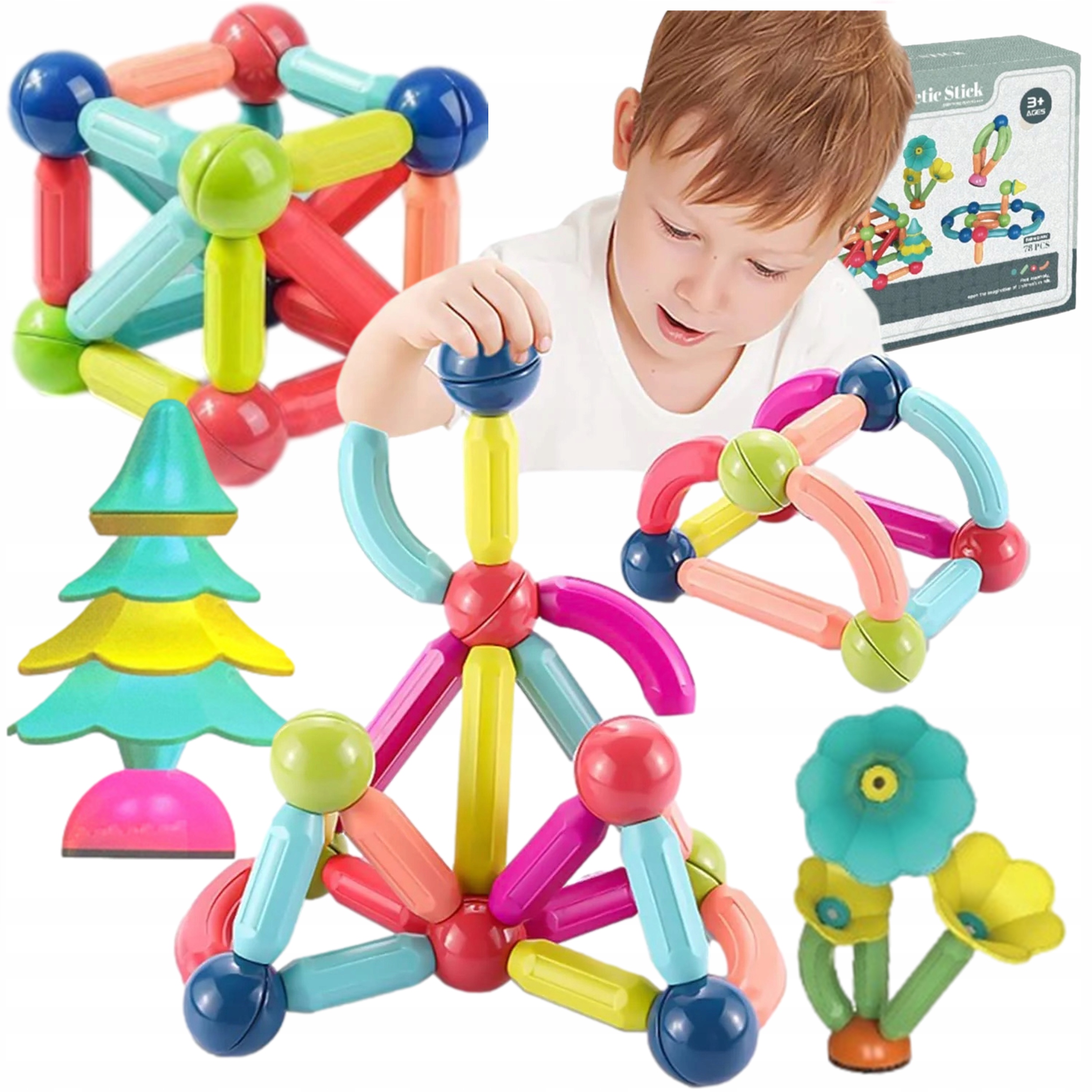 Навчальні магнітні блоки, магнітні палички - Монтессорі-конструкції, 78 елементів