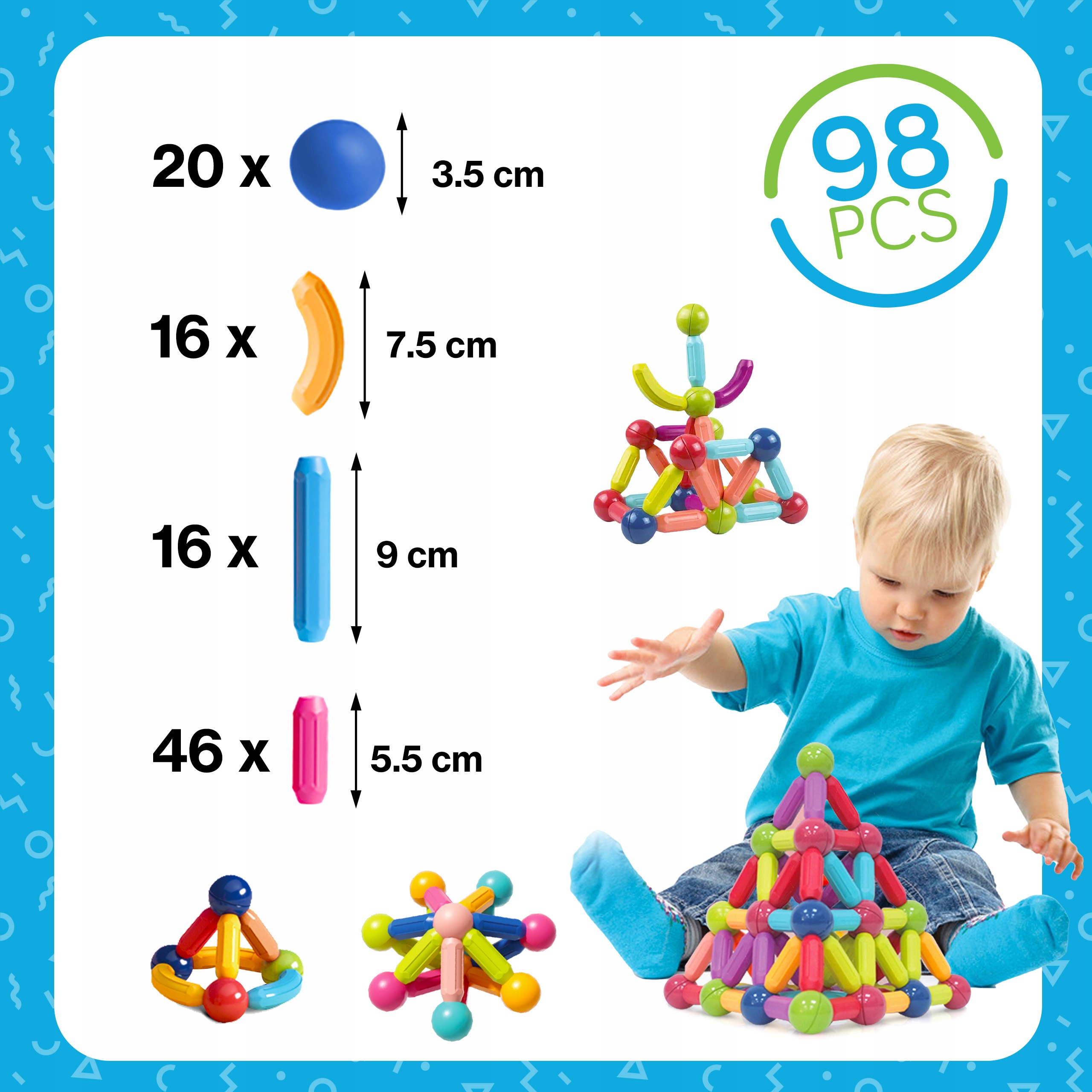 Блоки легко з'єднують окремі елементи будь-яким способом і під різними кутами. З боків кожного блоку вбудовані сильні магніти, які з’єднують наступні блоки разом, створюючи різні фігури. Блоки можна розкладати рівно, щоб створювати доріжки, змійки тощо, а також просторово будувати різноманітні тривимірні фігури. Таким чином діти зможуть не лише стимулювати свою просторову уяву.