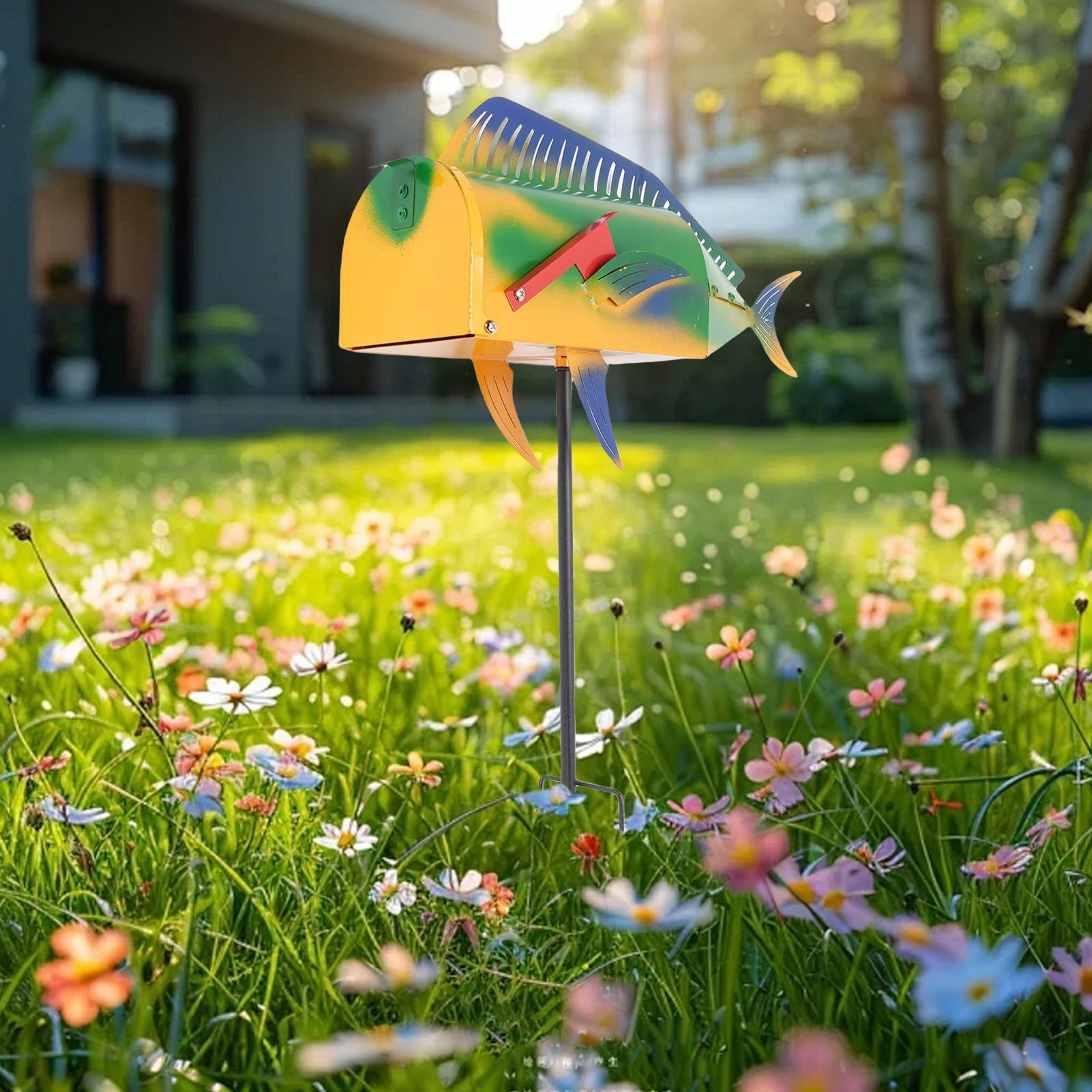 4. Унікальний дизайн: ця металева поштова скринька з чарівним малюнком рибки додає веселого та виразного штриху вашому зовнішньому простору, роблячи його унікальною особливістю будь-якого двору.
