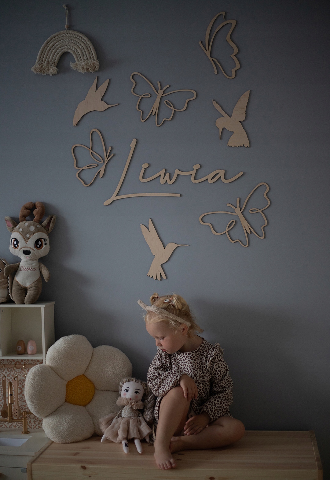 дерев’яні метелики можуть легко ключі, вирішивши індивідуальне десятир. Напис можна встановити на стіну за допомогою кріпильної стрічки (не входить до набору).
