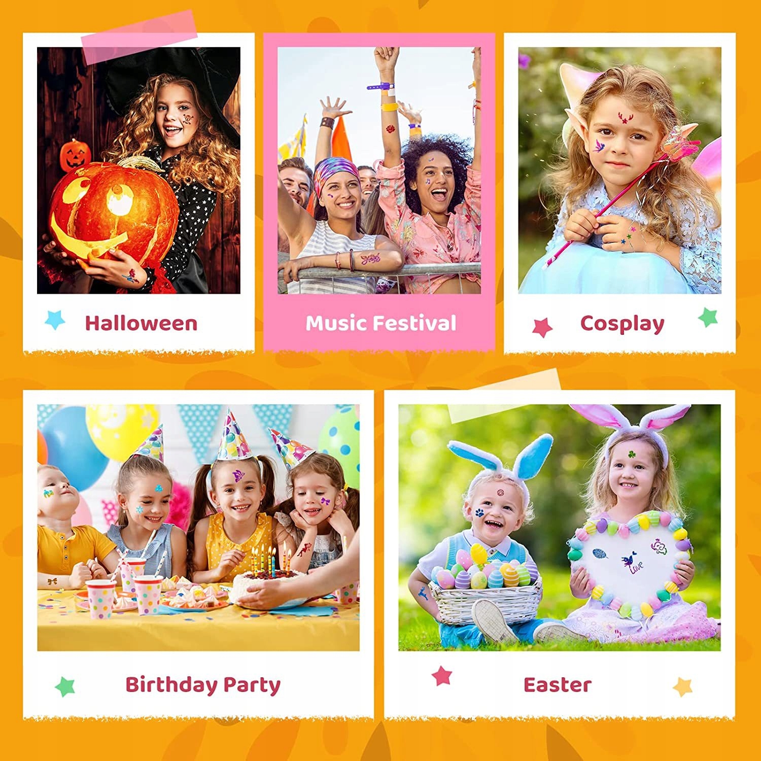 ⭐ набір чудово підходить для ваших святкових свят. Він полегшить кожну вечірку і принесе посмішку на обличчя дитини, яке матиме татуювання. Який зникне через кілька днів;)