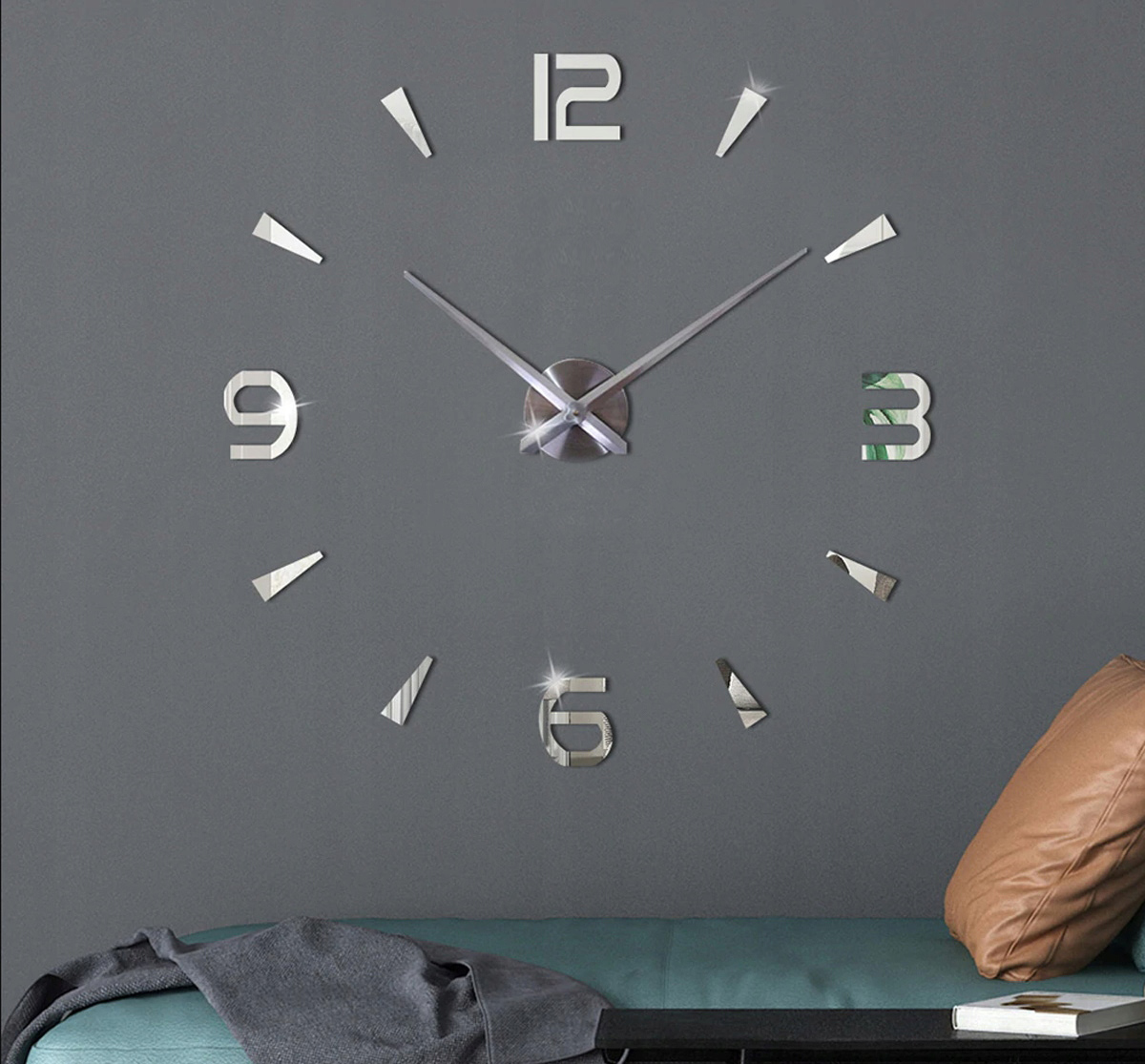 Великі настінні годинники 80-120 см срібло 4 цифри