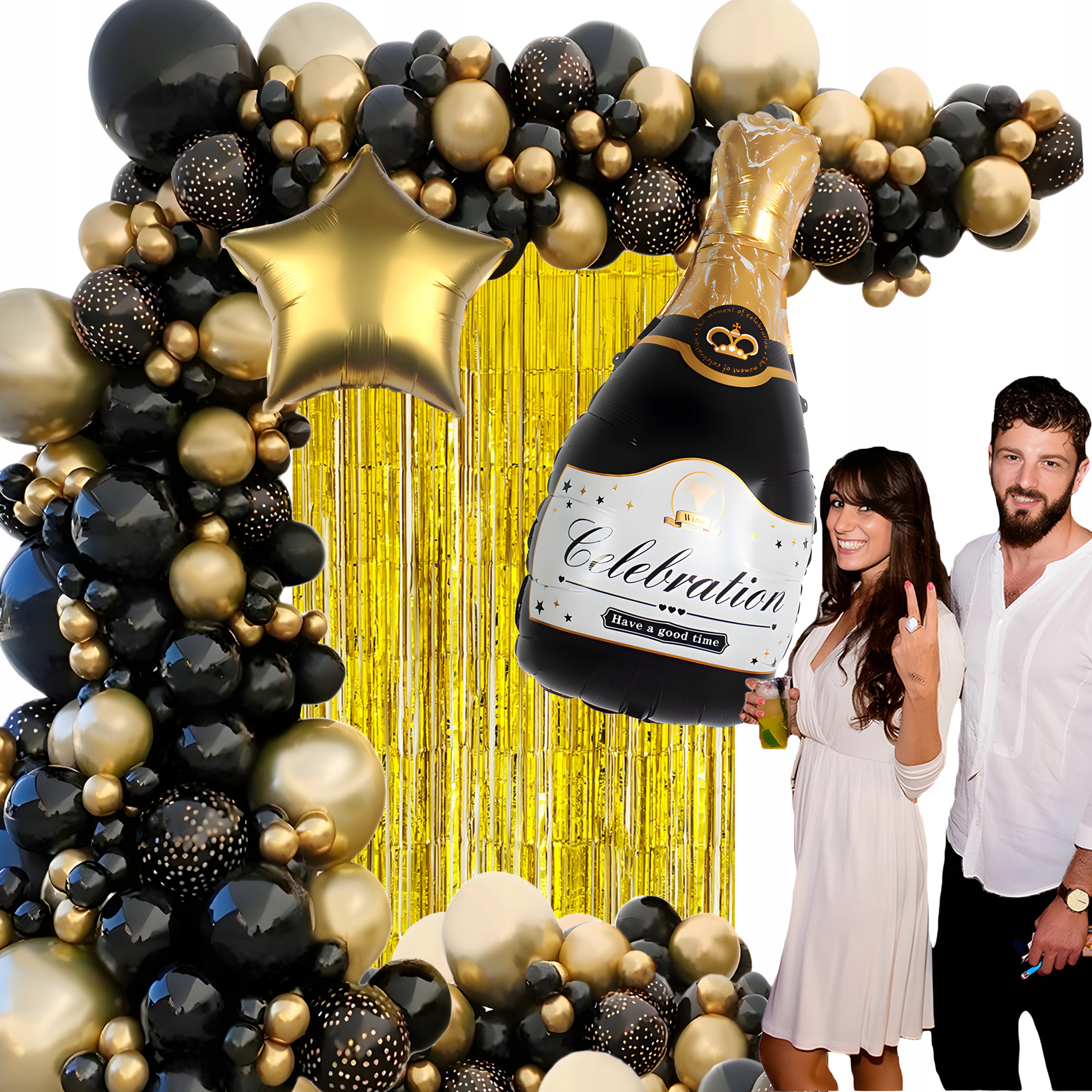 - 137 повітряних куль у чорному та золоті, діаметром від 13 см до 46 см