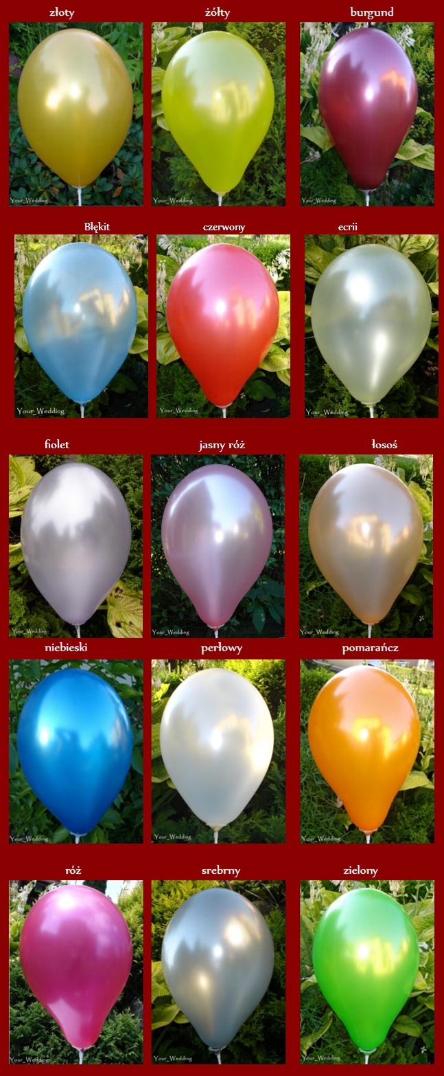 Повітряні кульки металік та перлини розміром 11 дюймів - 33 см на всі випадки життя: весілля, банкети, дні народження та ін. Завдяки своїм розмірам вони виглядають ефектно. Ці повітряні кулі використовуються декораторами для створення гірлянд, арок, стовпів тощо.