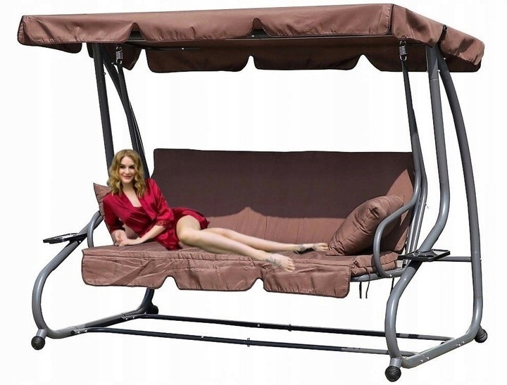 Садова гойдалка обладнана з великим, регульованим навісомякий захистить нас від шкідливого ультрафіолетового випромінювання та створить приємну тінь у спекотні дні. Зручний, м'який матрац товщиною 8 см і дві подушки, які кріпляться, зроблять ваше перебування приємнішим у будь-який час. Завдяки можливості швидко перетворити гойдалку на шезлонг, ми можемо ідеально адаптувати її до наших потреб. Вся гойдалка виготовлена зі сталі з порошковим покриттям, а також пластикові захисти по кутах основи , що забезпечують стійкість під час розгойдування.