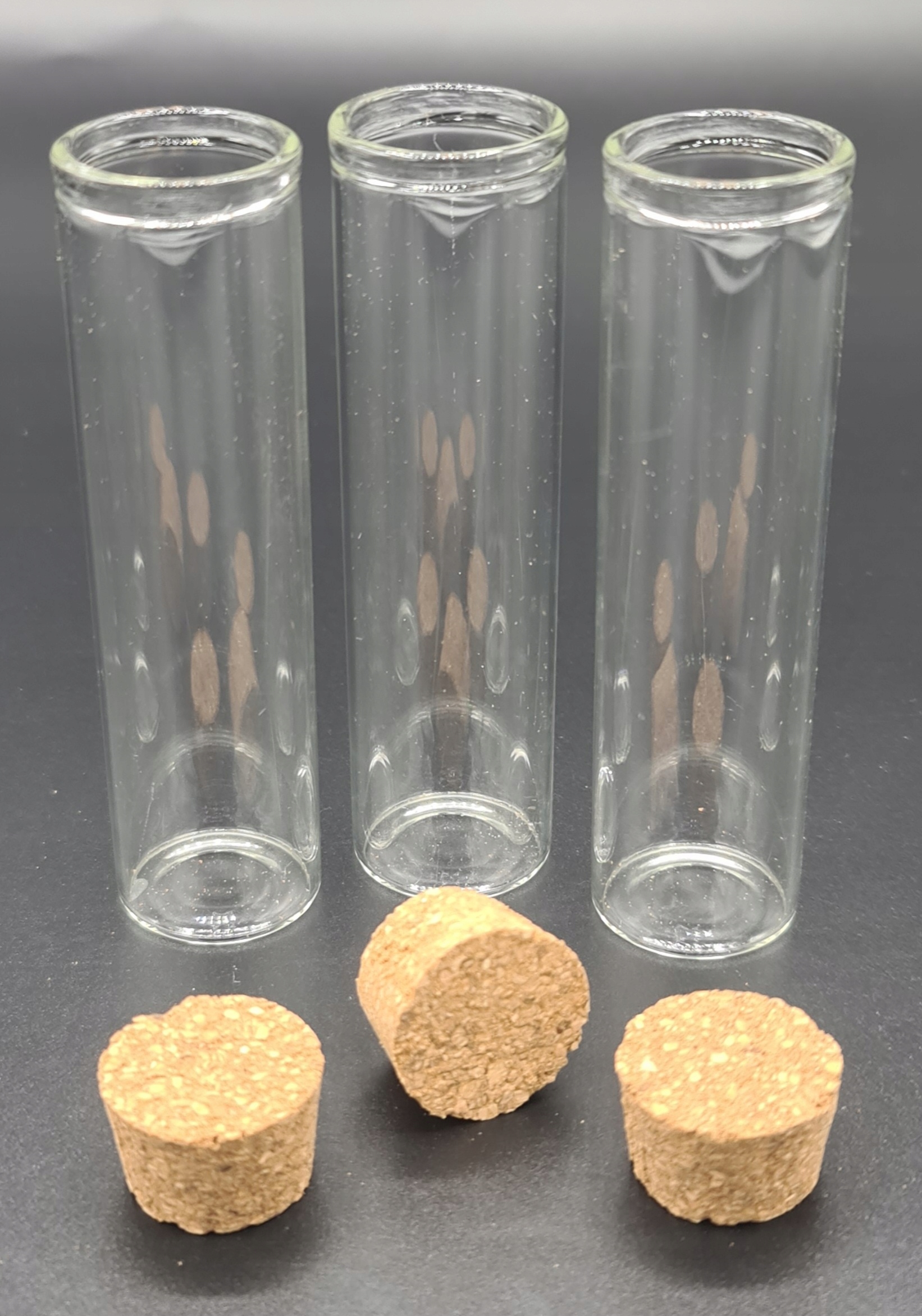 - Набір скляних пляшок із пробками, безпечно упакованих у коробку, наповнену пухирчастою плівкою.