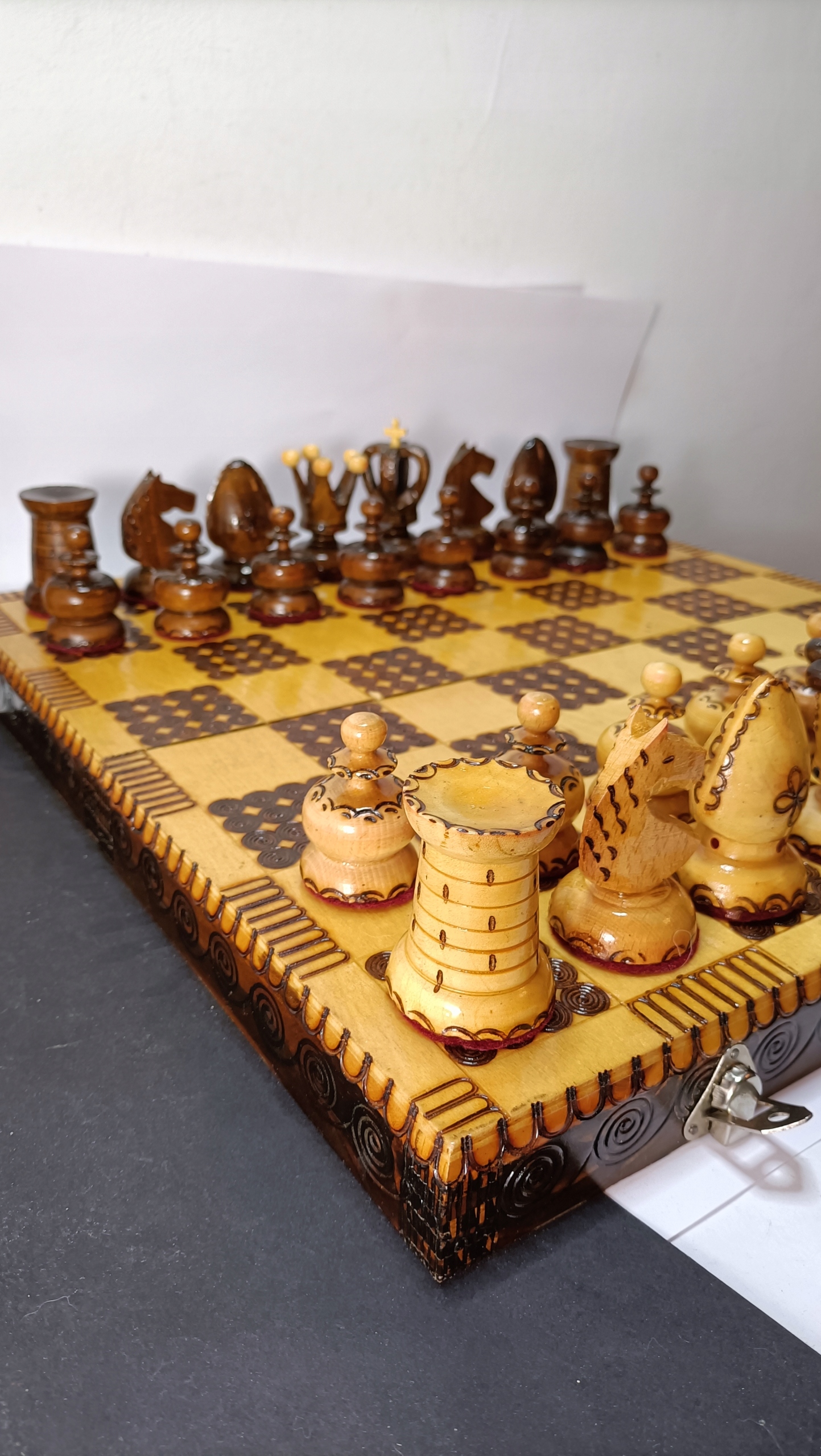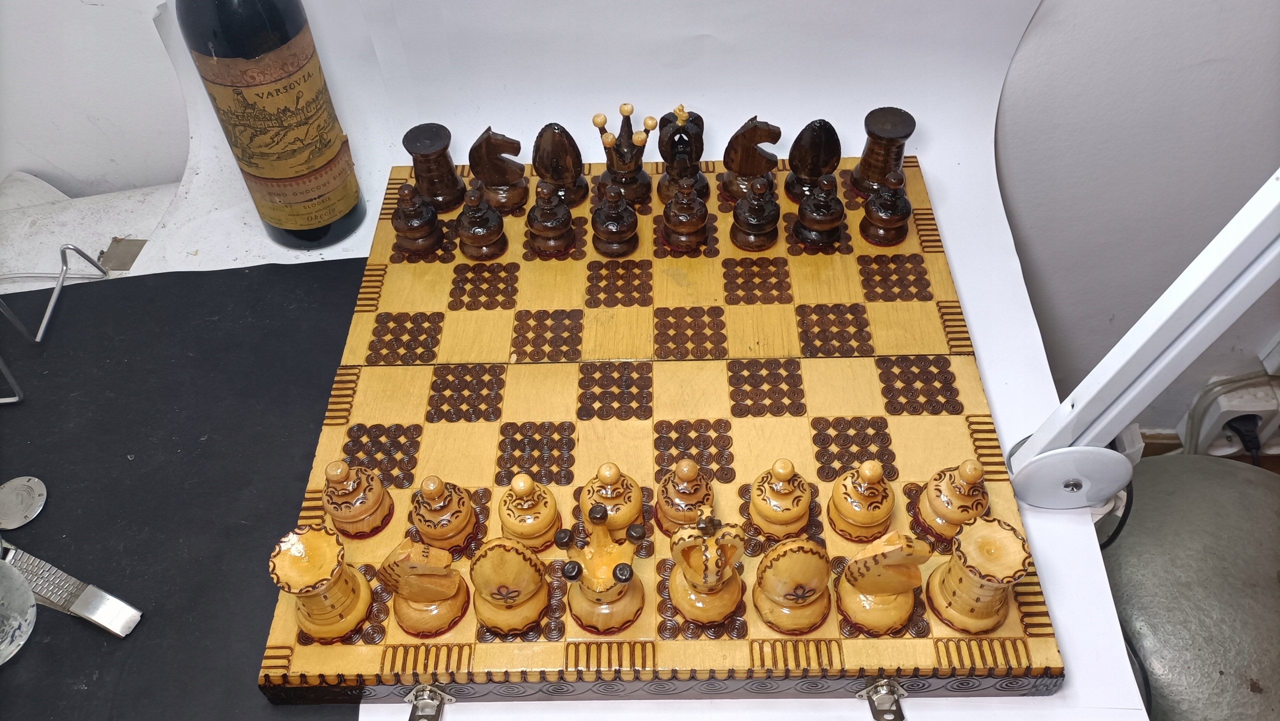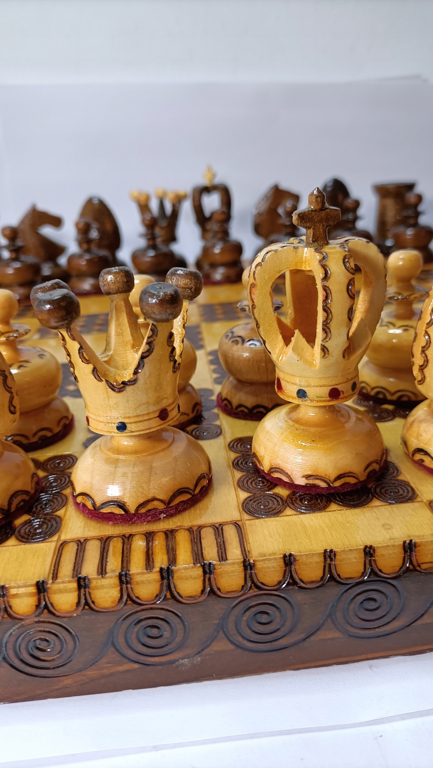 Великі старі різьблені дерев'яні шахи від дизайну Cepelia PRL