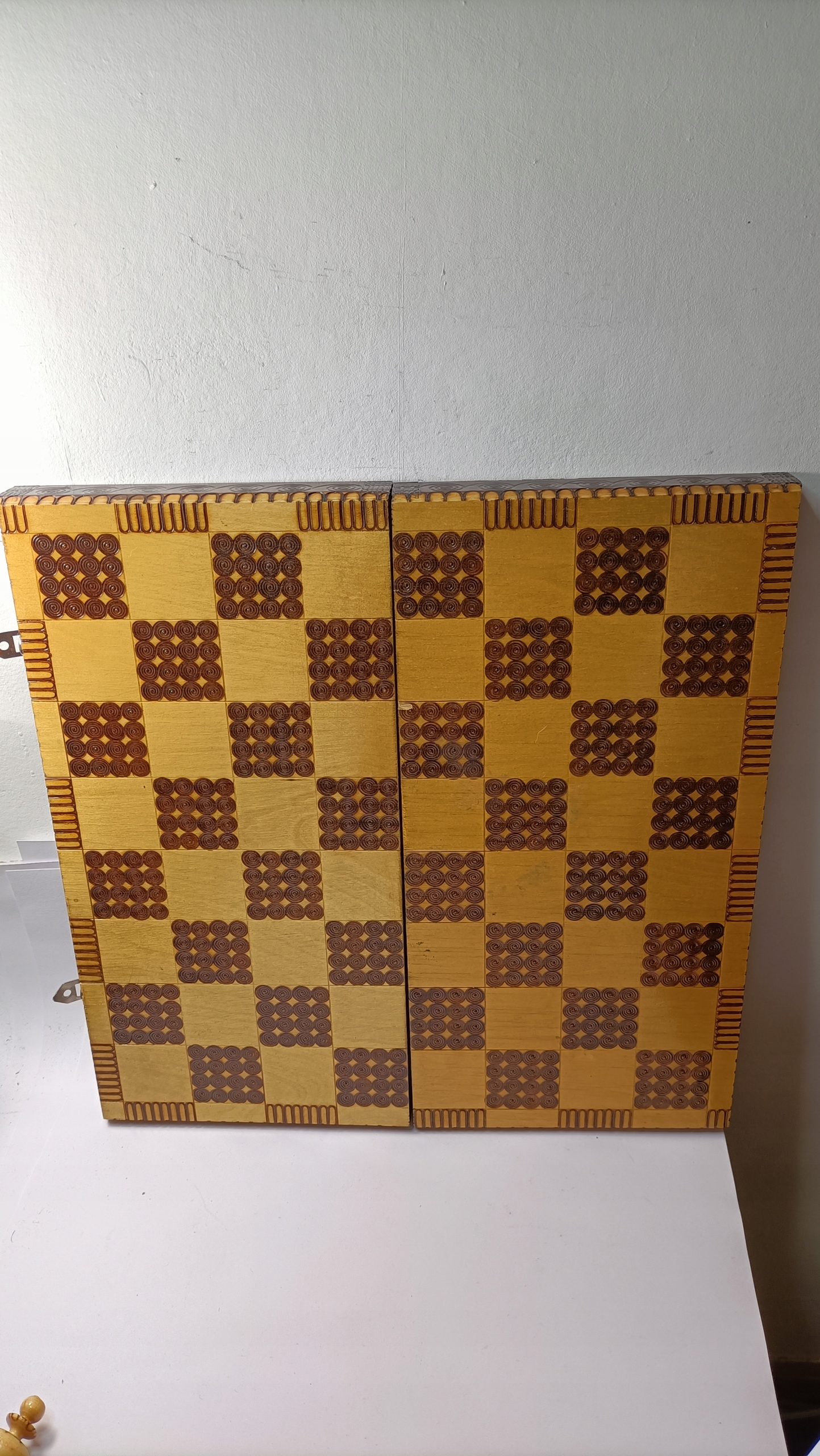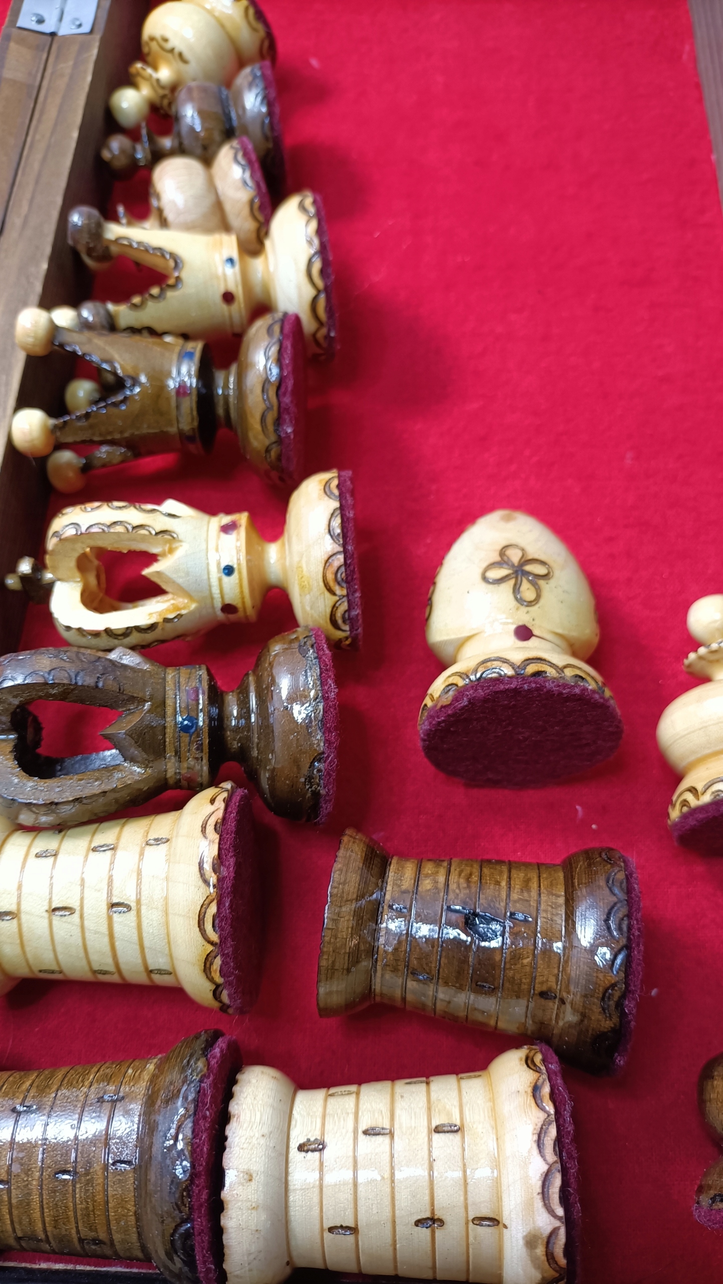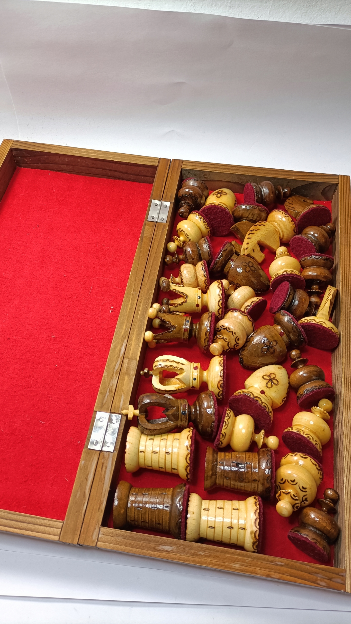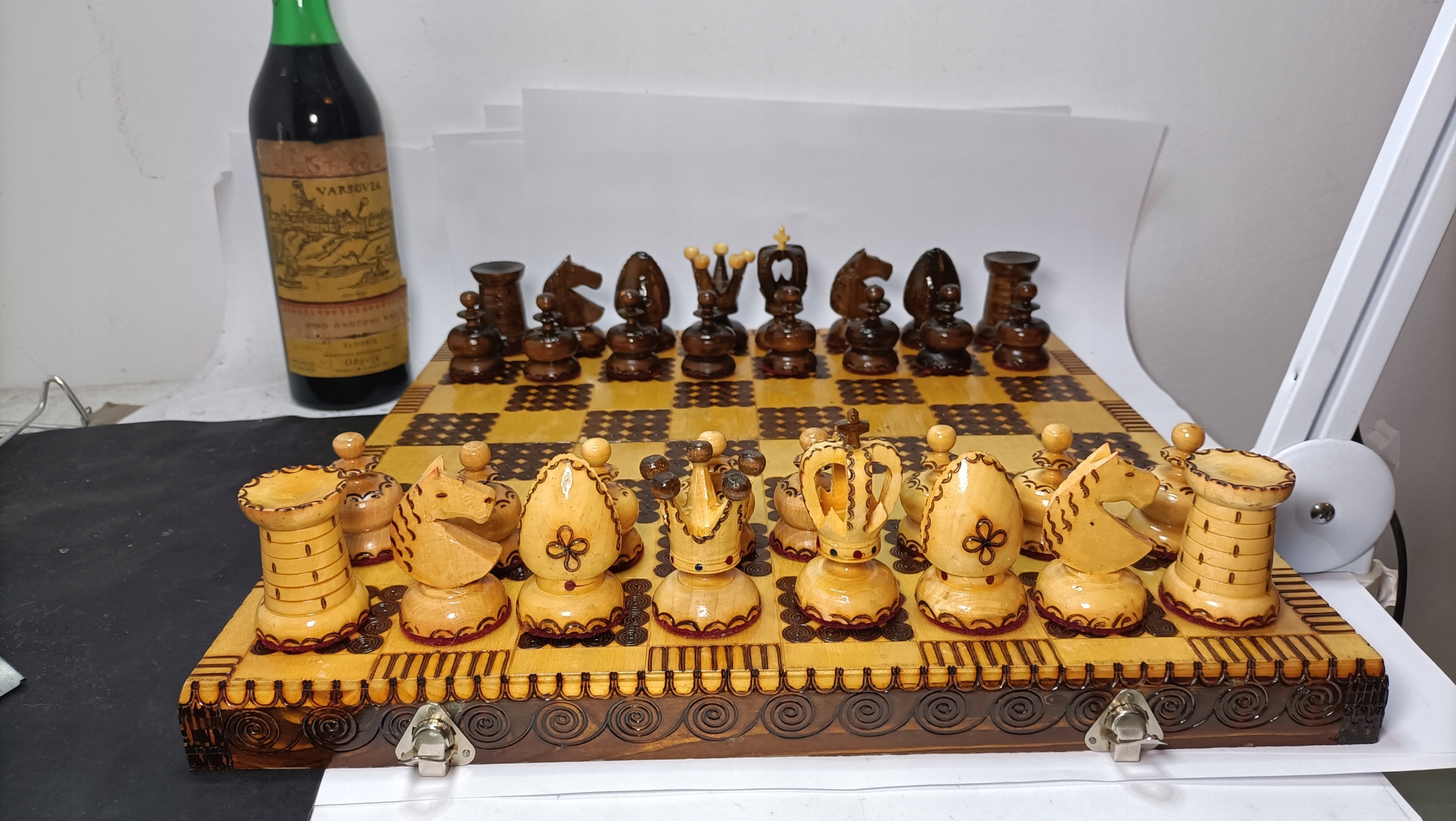 Великі старі різьблені дерев'яні шахи від дизайну Cepelia PRL