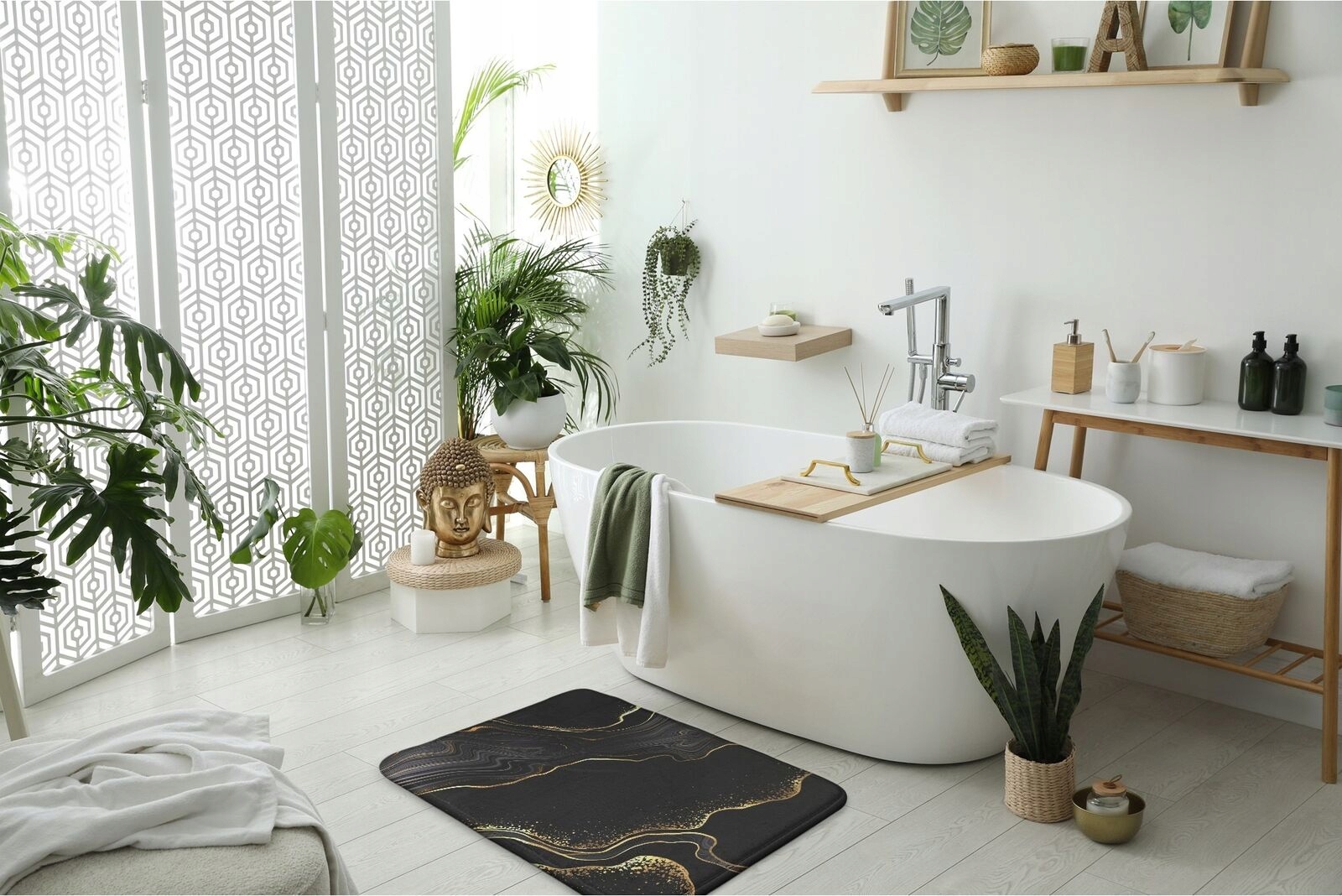 Цей килимок для ванної кімнати розроблено з думкою про ваш комфорт і безпеку. Його сучасний мармуровий візерунок додасть інтер’єру нотки розкоші та стилю, ідеально поєднуючись із різноманітними композиціями.