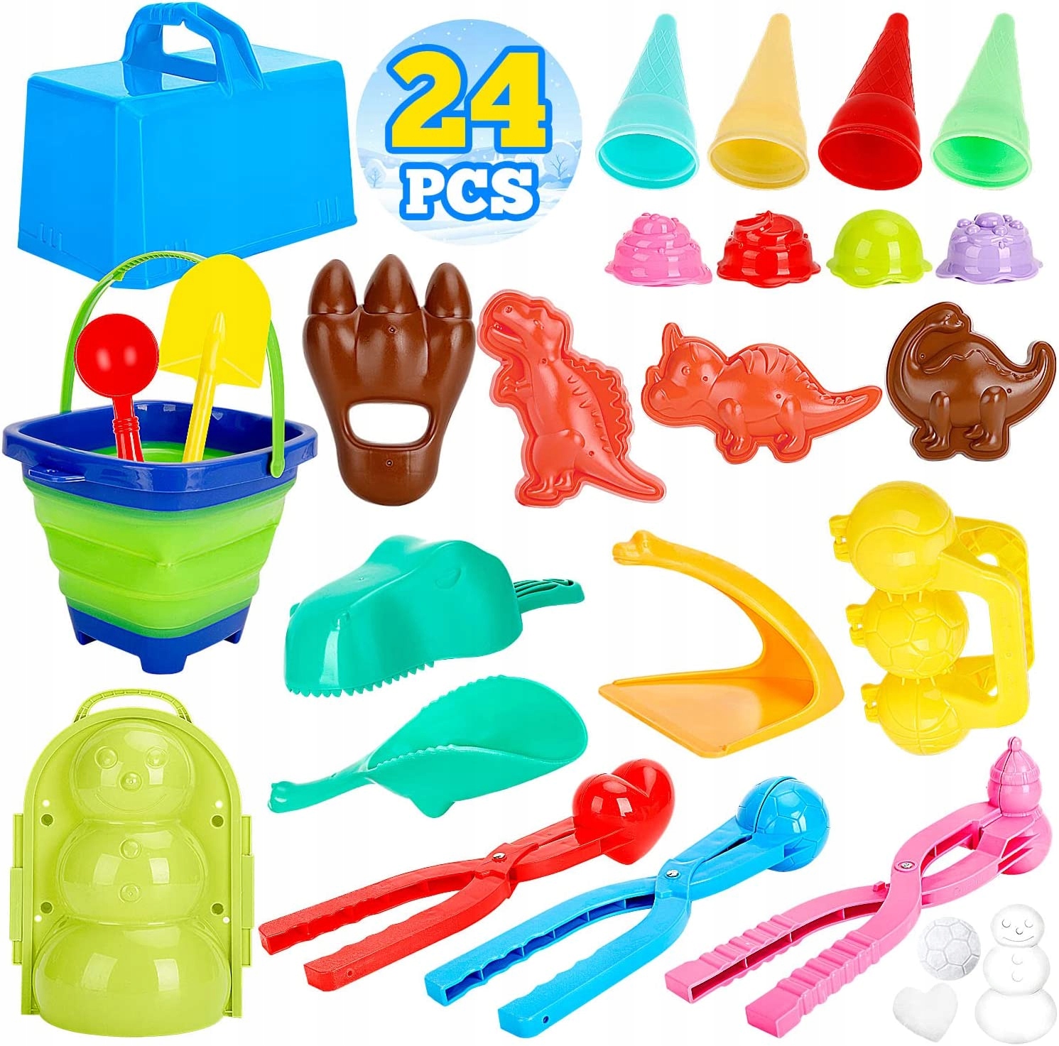 - Набір для створення сніжок з 24 предметів - в набір входять снігові іграшки різної форми. Лопата для снігу, лопата для снігу, снігова цеглинка, динозавр, футбол, ложка, конус, лапа, сніговики, форма сердечка, форма для морозива 24 в 1, для виготовлення сніжок і снігових цеглинок. Ідеальна іграшка для дітей.