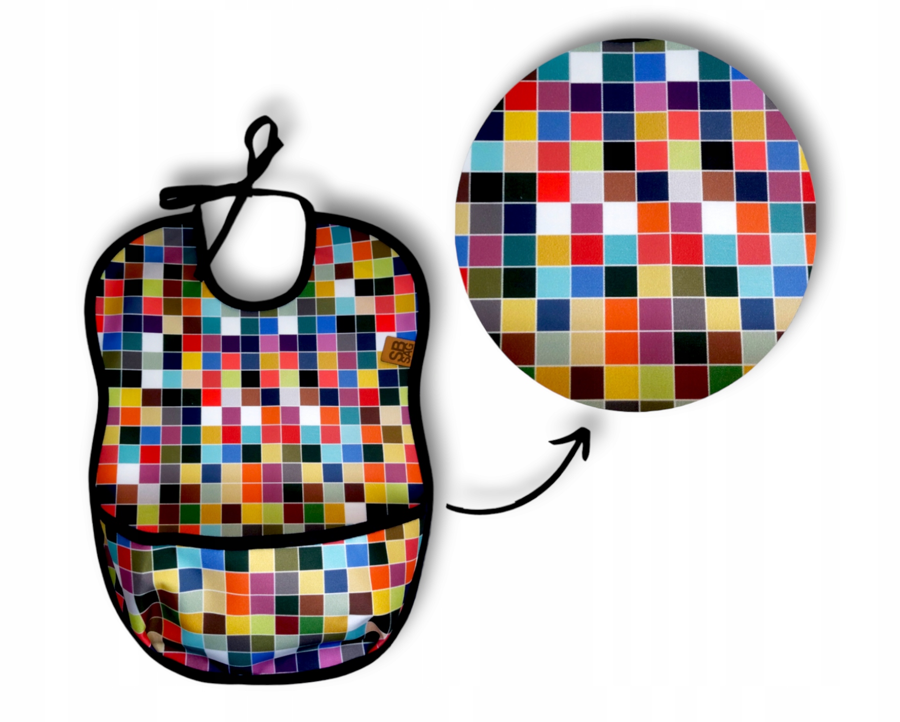 Водонепроникні нагрудники SafeBabySAG виготовлені з тканини найвищої якості, найважливішою перевагою якої є водонепроникність - як у силіконового нагрудника . Тканина м'яка - як тканинний нагрудник. Ми довго працювали над кишенею. Тести, розмови з користувачами, особистий досвід і робота з тканиною дозволили нам створити вироби з 3D навісною кишенею, яка не закривається і працює на рух користувача. Глибина кишені запобігає падінню під час нахилу. Нашу продукцію відрізняє мала вага, м'якість, легкість очищення та швидка готовність до повторного використання. Бавовняна окантовка навколо нагрудника та лямки для кріплення не подразнюють шкіру. Зав'язування є найефективнішим - швидким і виключає ризик того, що пацієнт зніме нагрудник самостійно, і дуже міцним на відміну від липучок, які швидко виготовляються і можуть дратувати, або гачки, які легко «розробляє» дитина. Крім того, зав’язка дозволяє нагруднику ідеально прилягати до шиї, щоб уникнути потрапляння бруду під нагрудник.