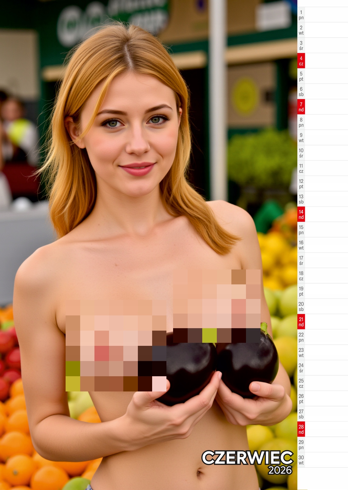 Великий A3 календар 2026 Сексуальні дівчата голі голі фрукти барвисті