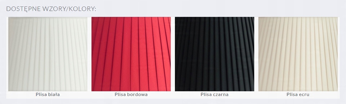 У нашій пропозиції представлені абажури з цієї колекції різних розмірів - для торшерів, приліжкових світильників, настінних світильників, люстр і для підвісних світильників, які кріпляться до стелі.