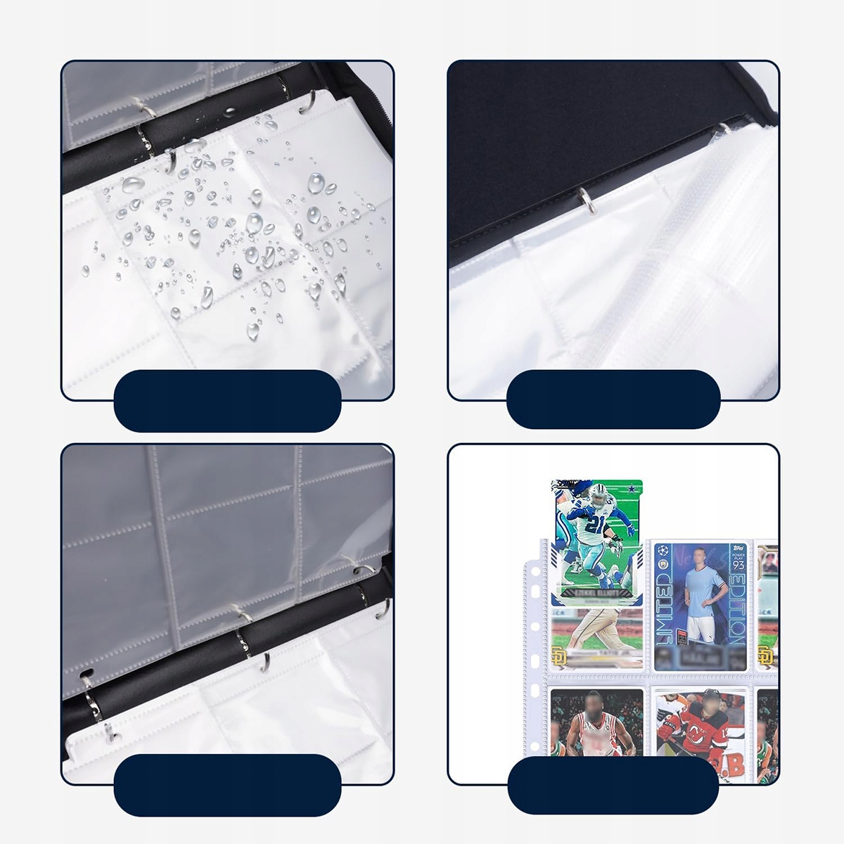 Всередині 50 пластикових сторінок, кожна з яких має 9 кишень для зберігання окремих карток. Відкладний формат; кожну сторону можна зняти та замінити. Завдяки місткості до 900 карток цей альбом не тільки пропонує багато місця для зберігання, але й зберігає якість і чіткість ваших колекцій. Прозорі рукави вражаюче відображають картки, забезпечуючи чітке бачення кожної деталі.