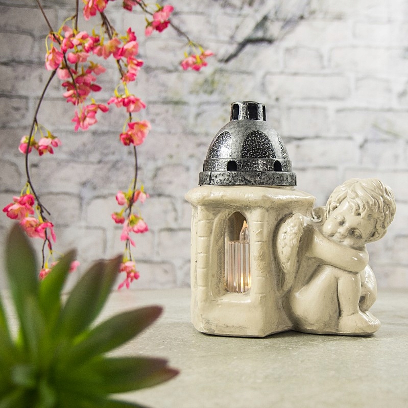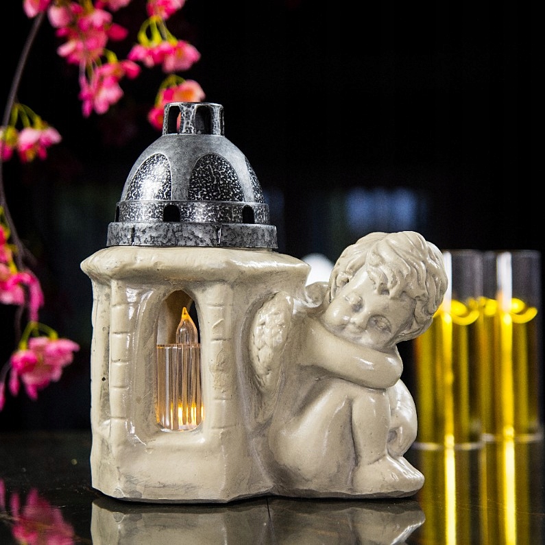 Свічка з ангелом з гіпсу просочена. Він радує своїм оригінальним виглядом.