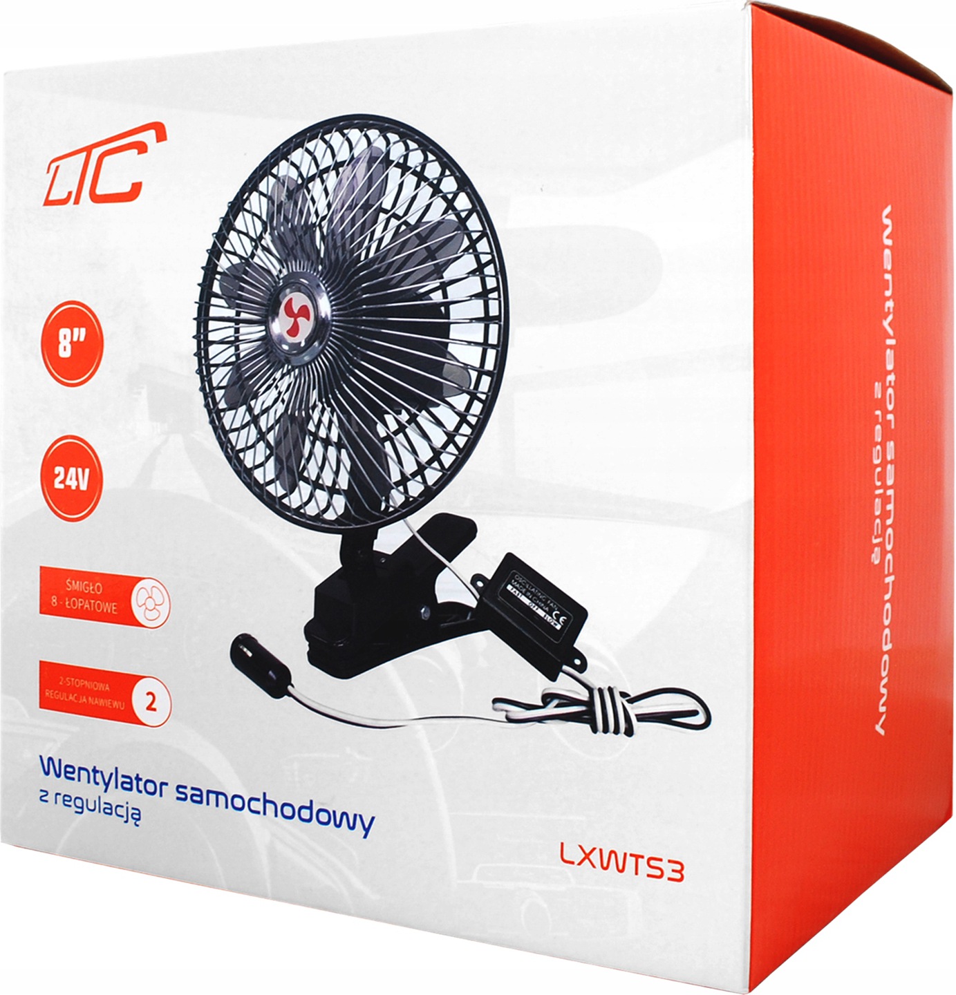 - Вентилятор живиться від 24 В (вантажівки), він також без проблем працює від 12 В (легкові автомобілі) з трохи меншою потужністю, але цілком достатньо, щоб охолодити салон автомобіля.