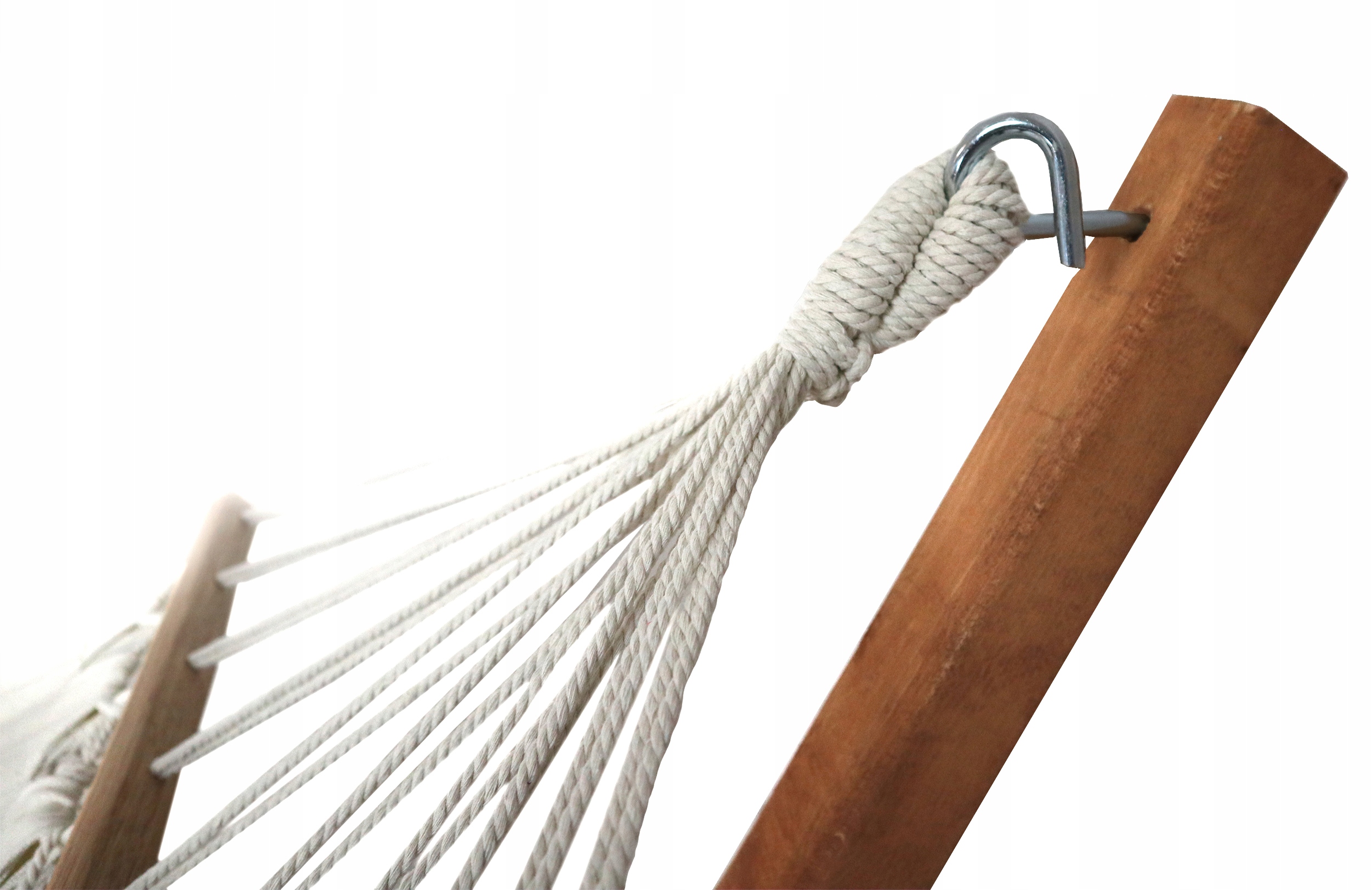 - Завдяки використанню бавовни ви можете бути впевнені, що гамак адаптується до вашого тіла, зберігаючи максимальну вентиляцію. Натуральний, щільний матеріал - гарантія приємного відпочинку.