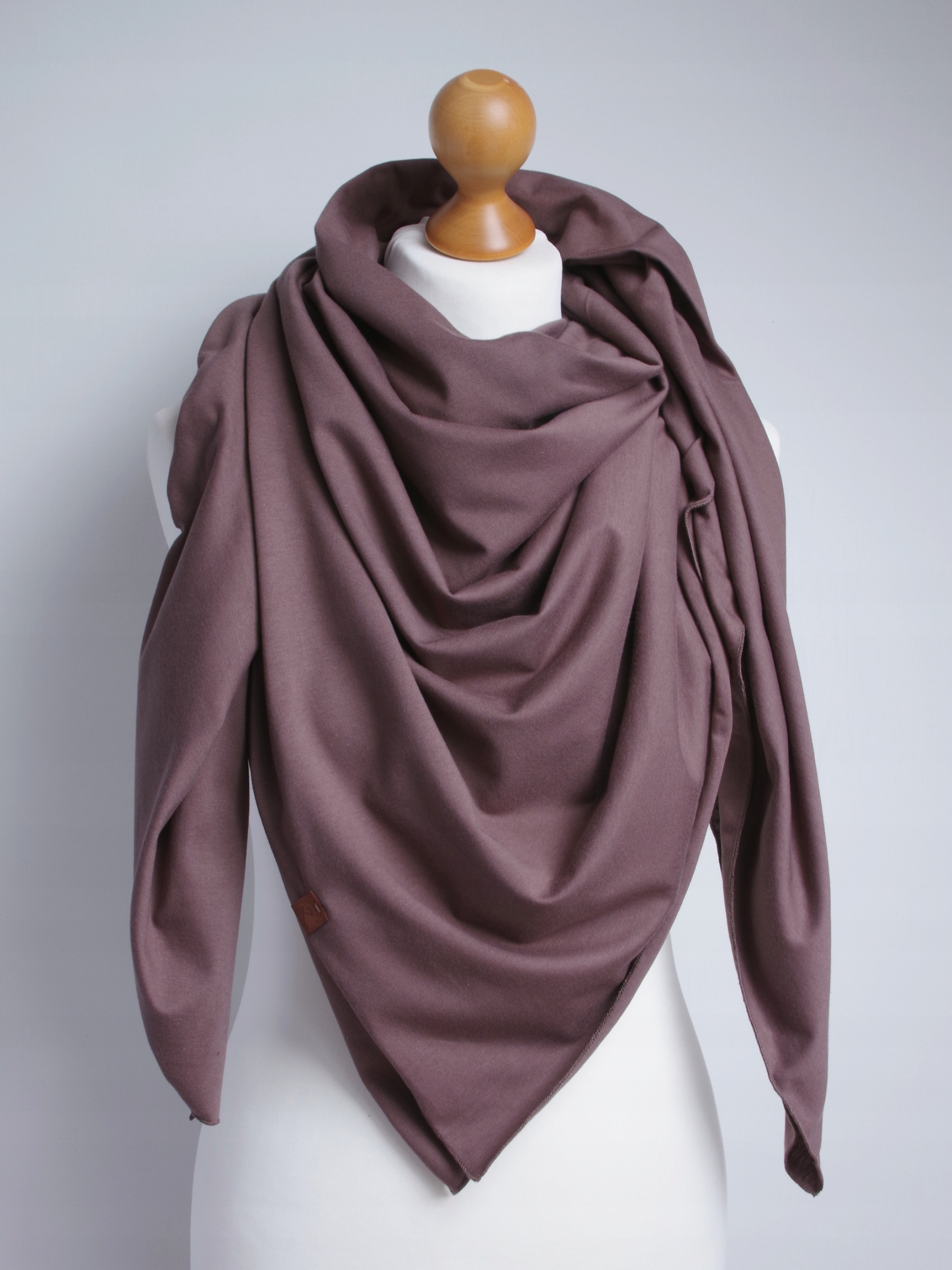 Великий бавовняний шарф бежевого (какао). Шарф приємний і м'який на дотик і дуже добре сидить. Шарф виготовлений з високоякісної бавовни. Краї прошиті на машинці, надаючи естетичну обробку. Крім того, на ньому є етикетка нашої компанії.