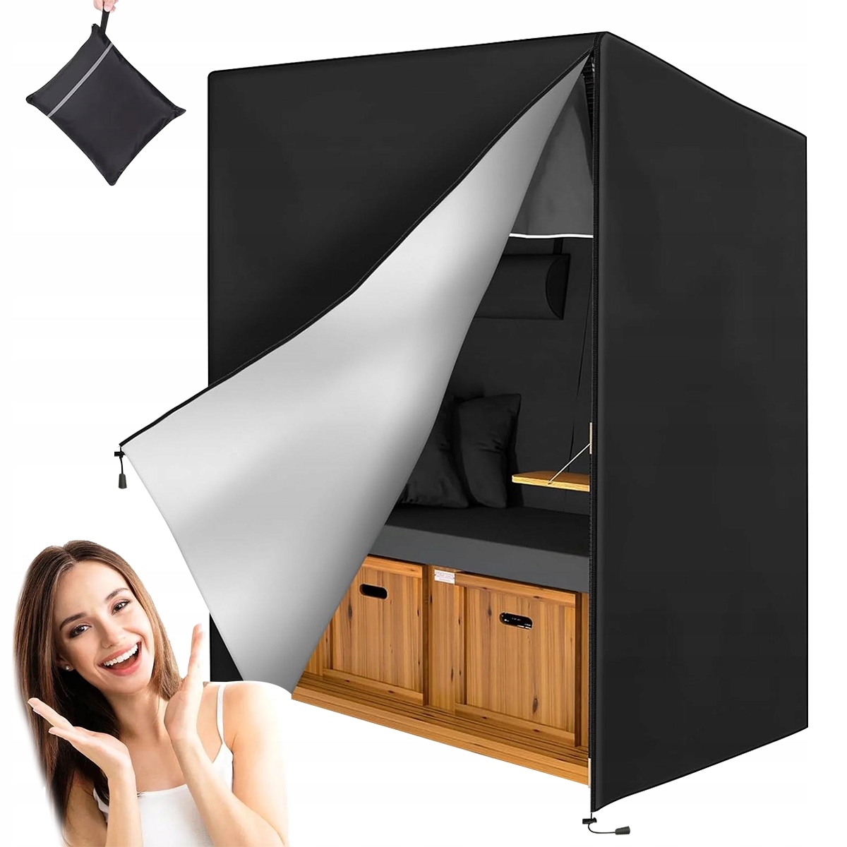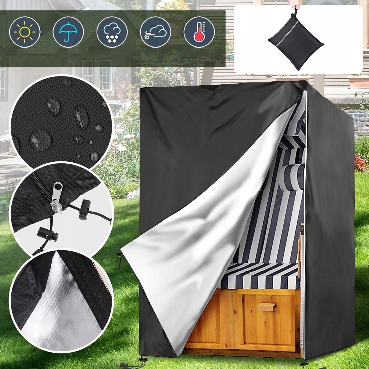 💧Зимостійкий захисний чохол для пляжного крісла, виготовлений з тканини Oxford 420D, 135x105x175/140 см, вітрозахисний, стійкий до УФ-випромінювання, стійкий до розривів, водонепроникний (чорний)