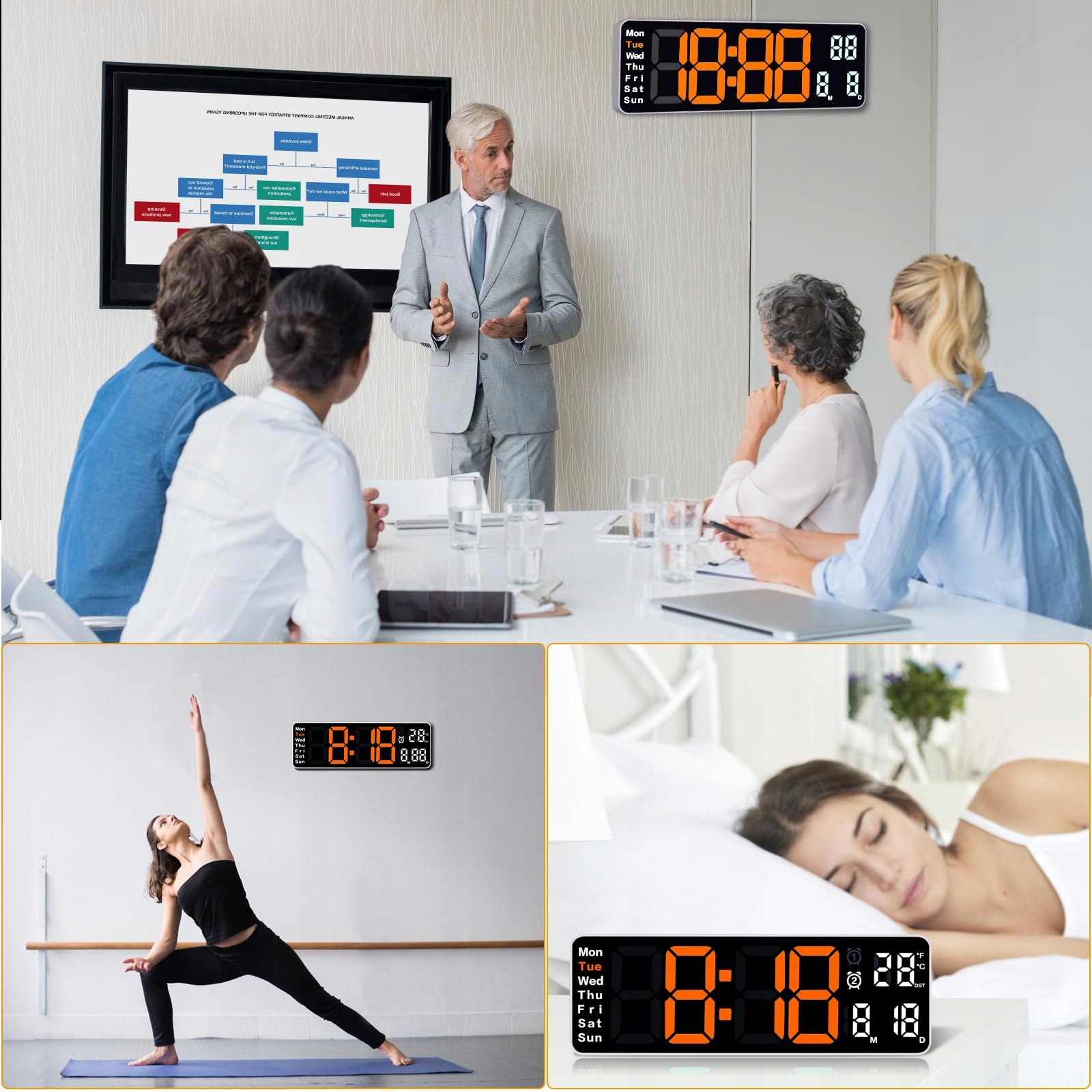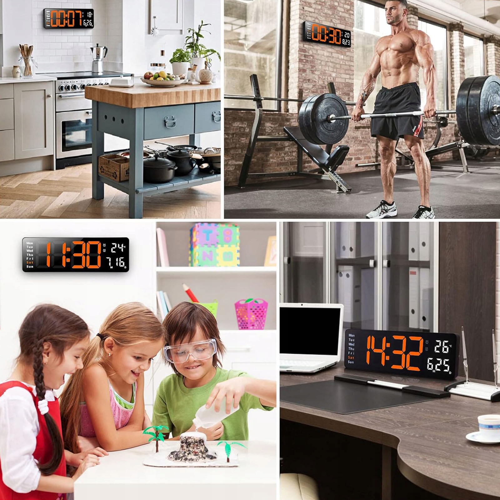 - ✅ 【великий світлодіодний дисплей】: Цифровий годинник має 13-дюймовий дисплей, який в той же час показує годину, дату, день тижня та температуру. Високий контраст і чіткі числа полегшують читання навіть з великої відстані та з будь -якого кута. Середній. Цифровий світлодіодний годинник має вбудовану функцію пам'яті, немає необхідності скидання, навіть якщо є втрата живлення (2 батареї AAA). Великий годинник можна керувати не лише кнопок ззаду, але і за допомогою пульта дистанційного керування. Цей настінний годинник буде працювати у вітальні, кухні, гаражі, будинку, офісі, складі, класі та тренажерному залі.