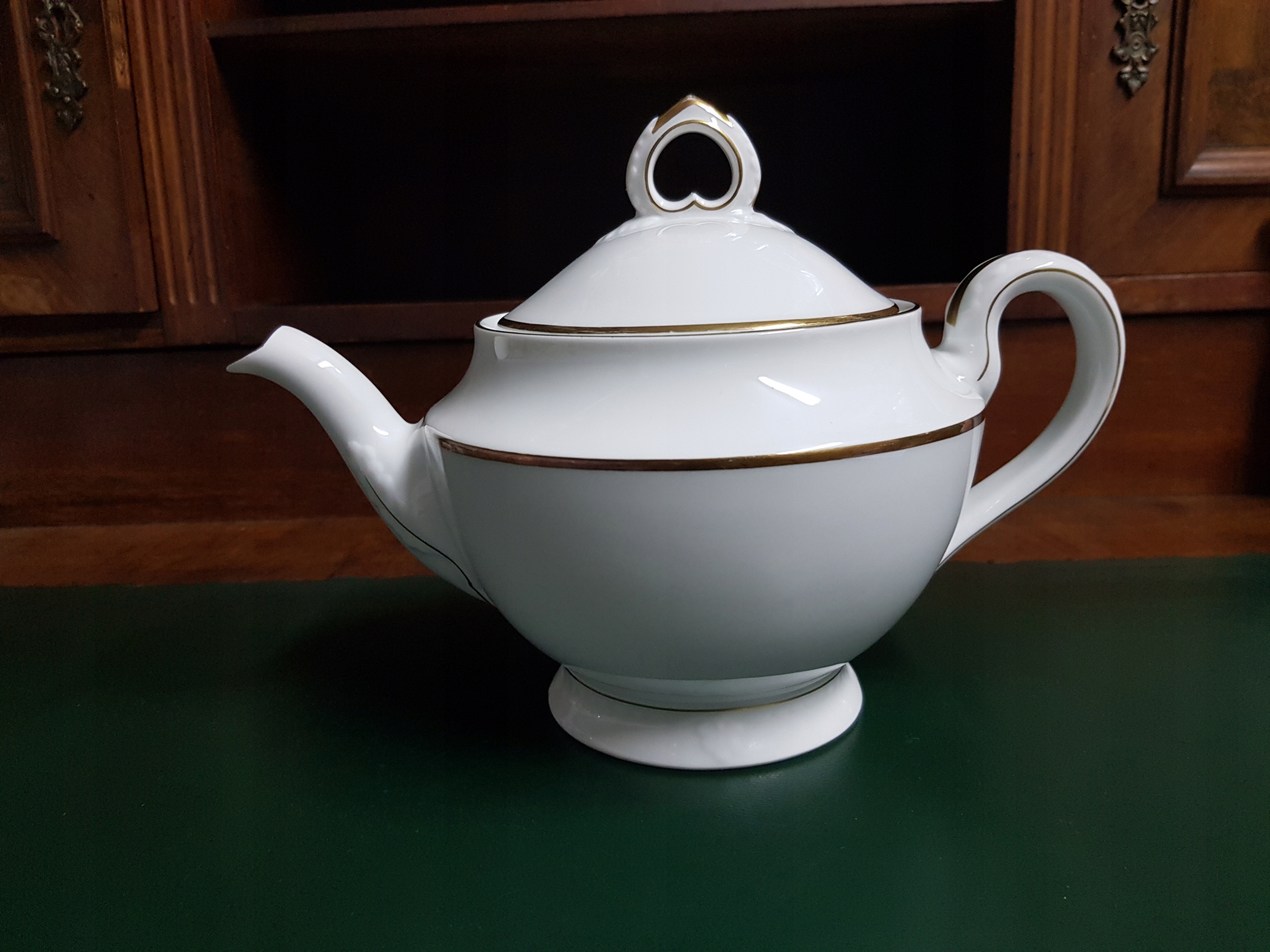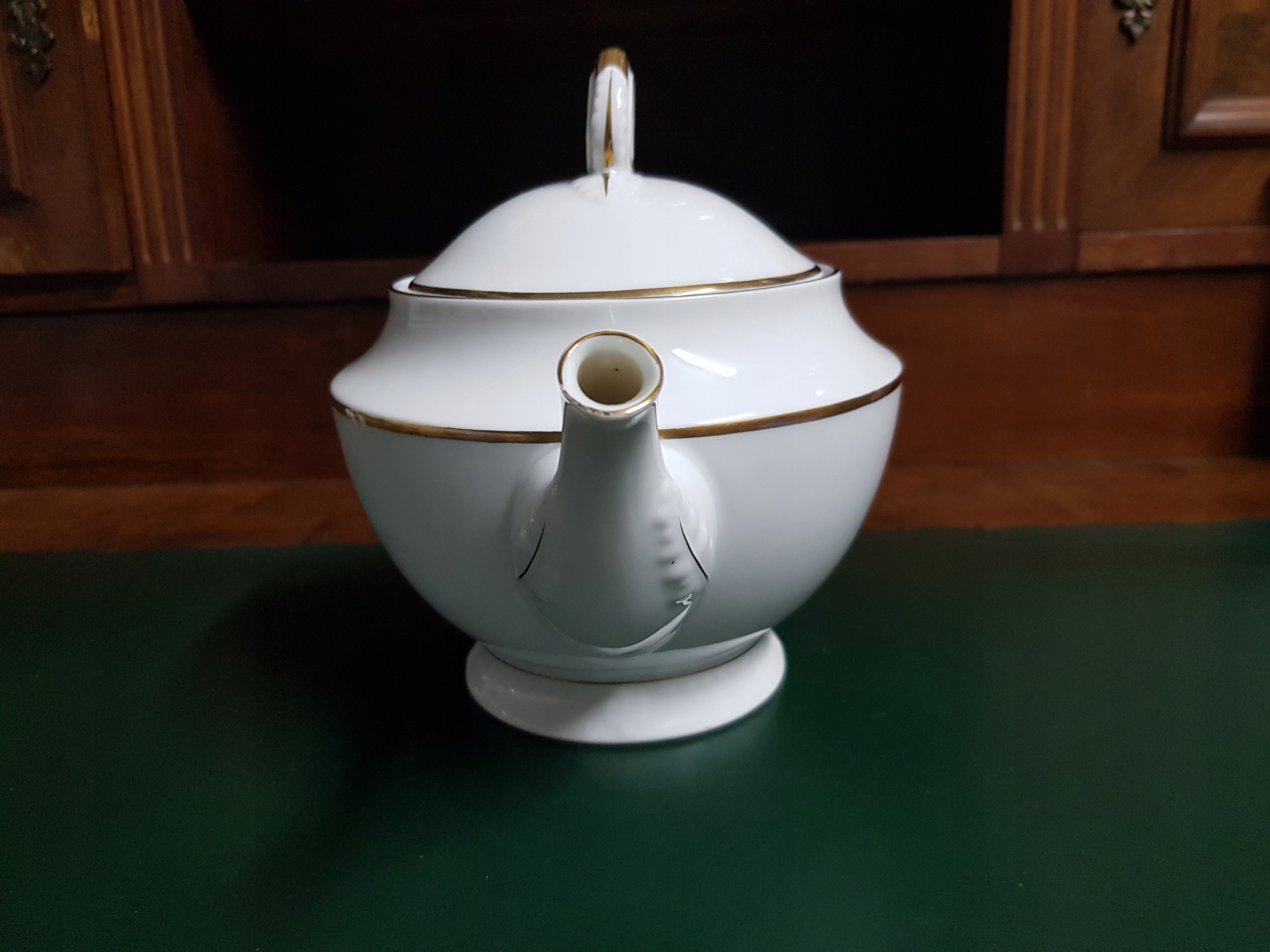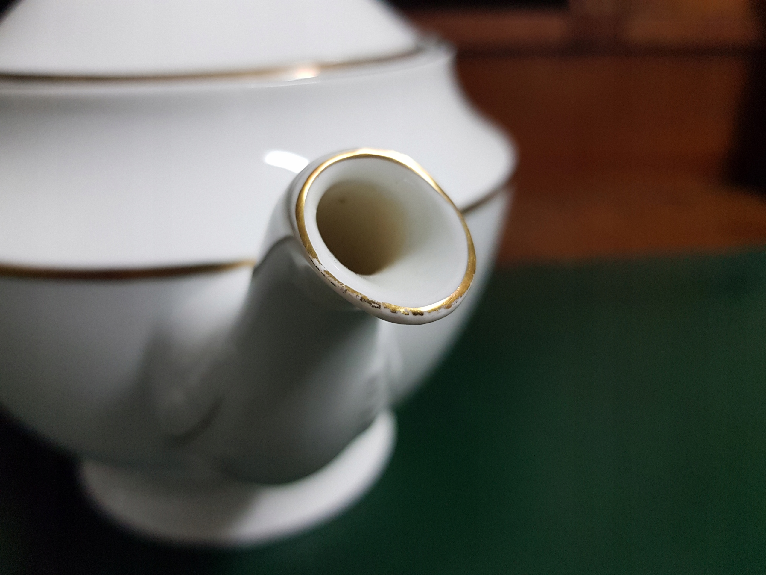 Предмет аукціону великий глечик, чайник Біла порцеляна з позолотою Всередині ситечко.