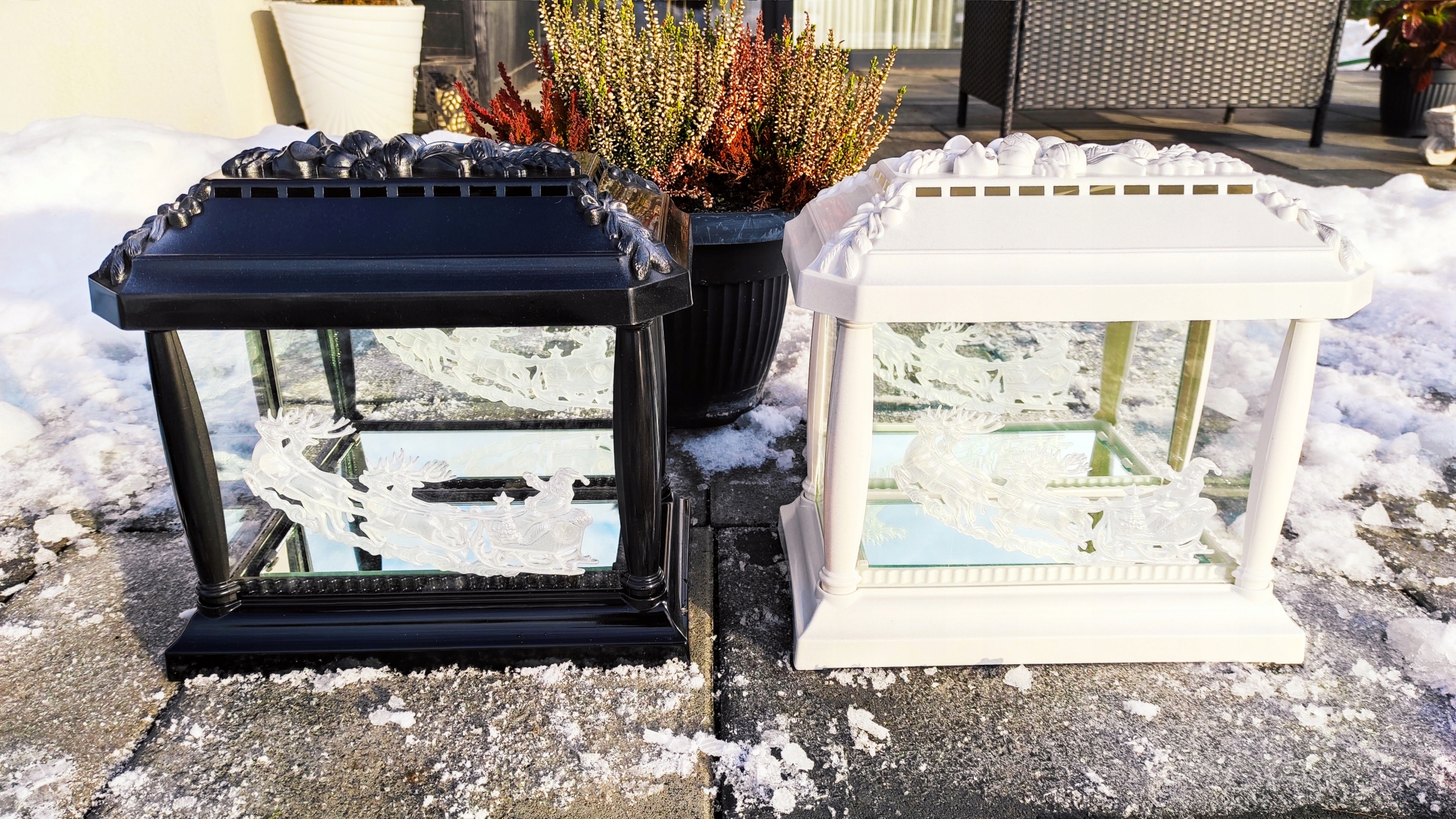 Корпус виготовлений із атмосферостійкого матеріалу, на задній стінці та знизу є дзеркала, призначені для відбиття світла свічок, інші три стінки зроблені з товстого скла.