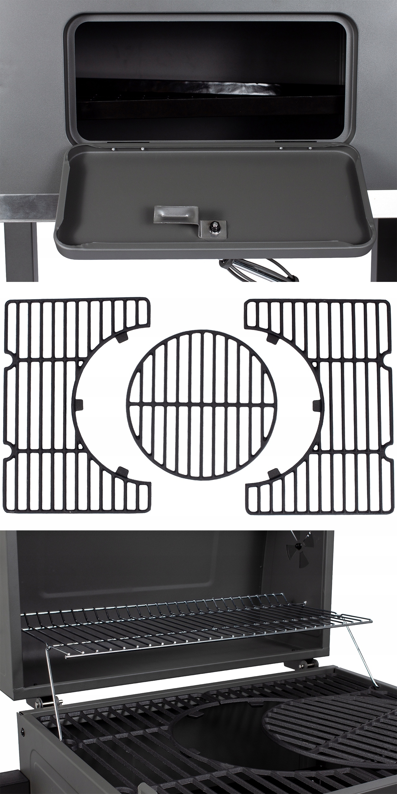 Біля гриля встановлені дві полиці, які дозволять зберігати продукти, спеції, посуд і необхідні аксесуари в одному місці , близько один до одного.